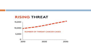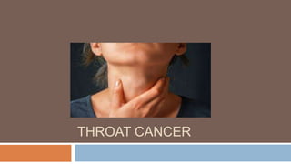 The document discusses two types of cancer - throat cancer and ovarian cancer. It provides details on: