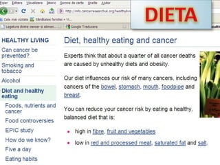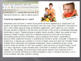 Documentul discută despre impactul anumitor alimente și obiceiuri asupra riscurilor de cancer, evidențiind substanțe toxice din fumat și din gătit. Se subliniază importanța alimentației vegetariene și a exercițiului fizic pentru prevenirea cancerului. De asemenea, se menționează rolul nutrienților specifici, precum sodul, în protecția împotriva cancerului.