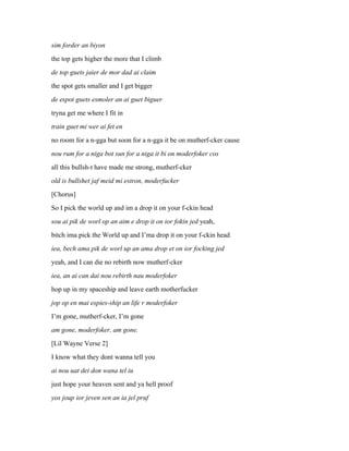 1) The document is a transcription of song lyrics that contain vulgar language and references to violence.
