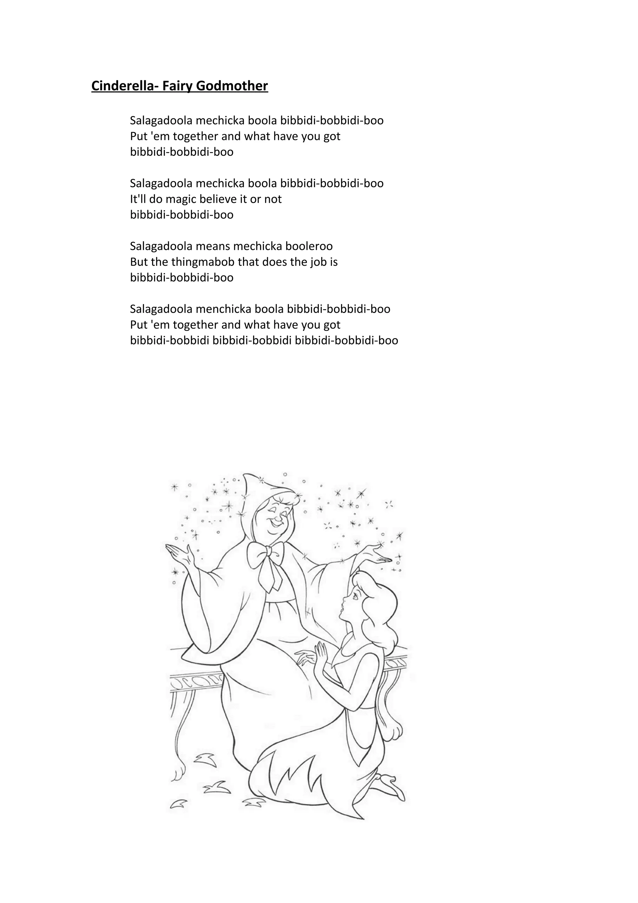 - The song "Bibbidi-Bobbidi-Boo" from Cinderella which describes the magic of the Fairy Godmother.