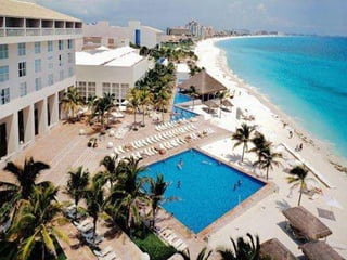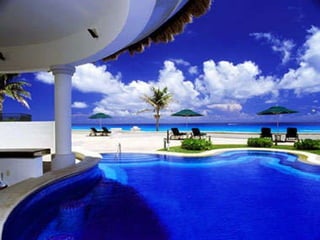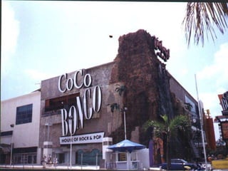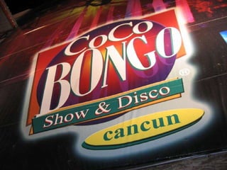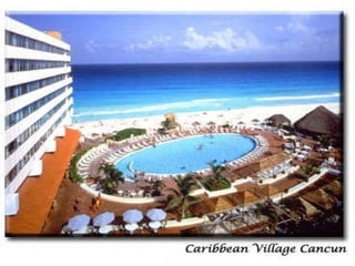 The document lists various locations in the Cancun area including the Cancun airport, hotels like Hotel Cancun and Hotel Avalon Baccara, clubs such as Club Azucar, Club Med, Club Las Velas and Club Verano Main, a Spanish school called Bosque del Caribe, the Riu hotel, a shopping center called Las Islas, Oasis Beach, the Yucatan Peninsula, and a cafe and cathedral called Rain Forest and Zocalo.