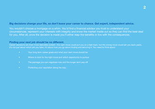 The document describes a recruitment consultancy called Definitive Consulting. It provides expert, independent career advice to help candidates make the right career decisions. It rejects short-term fee chasing and only represents candidates on an exclusive basis if it genuinely thinks it can make a difference in their career. The consultancy guides candidates through a multi-step process involving assessing goals, developing a career strategy, securing interviews, and providing ongoing support even after a new role is secured. Definitive Consulting boasts a high success rate in helping candidates secure interviews and job offers.