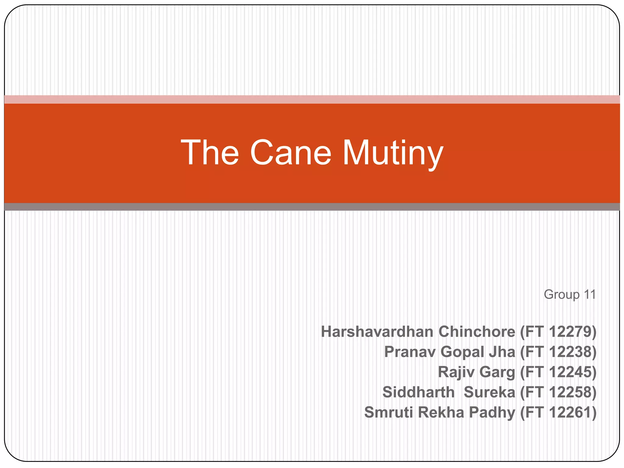 The document discusses a case study called "The Cane Mutiny" involving issues around an aging workforce at a German company called Medignostics. Key characters mentioned are the HR manager Frank Heberer and 58-year old bookkeeper Matthias Hausman. The company is facing cost cutting pressures and an imbalance in salary structure between older, higher-paid workers and new applicants. Financial pressures and a generation gap between older managers and younger subordinates are also issues. The context for India is discussed, noting its aging population and lack of support systems for the elderly.