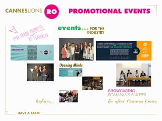 1. CannesLions runs various training programs focused on design, cyber, PR and advertising that provide experiences working on briefs, opportunities to present at events, and recruitment benefits.