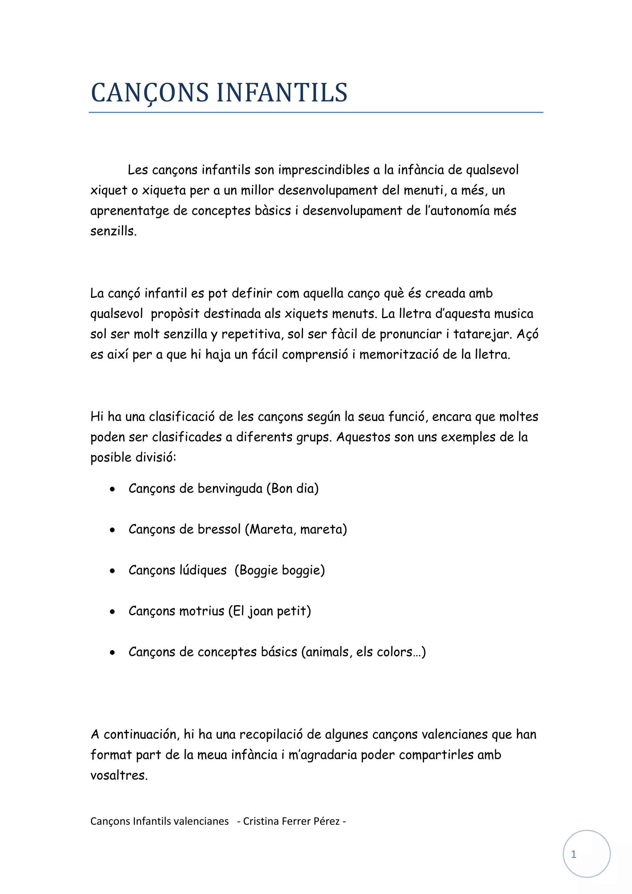 Cançons Infantils valencianes - Cristina Ferrer Pérez -