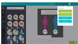 تتناول الوثيقة معلومات حول تطبيق Canva، الذي يتيح للمستخدمين تصميم الصور والقوالب باستخدام أدوات متطورة. يمكن للمستخدمين التسجيل عبر فيسبوك أو جوجل، ويقدم الموقع ميزات متنوعة مثل تحميل الصور، اختيار قوالب جاهزة، والتعديل على التصاميم. كما يوفر دعم للغات، بالإضافة إلى خيارات مجانية ومدفوعة.