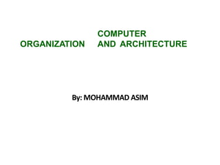 The document discusses computer organization and architecture. It defines architecture as the instruction set, registers, and addressing modes visible to programmers, while organization refers to internal design details like caching and pipelining. It describes the basic functional units of a computer including I/O, memory, arithmetic logic, and control units. It explains the fetch-execute cycle and how instructions are stored and executed from memory. Pipelining and superscalar techniques are discussed to improve processor performance.
