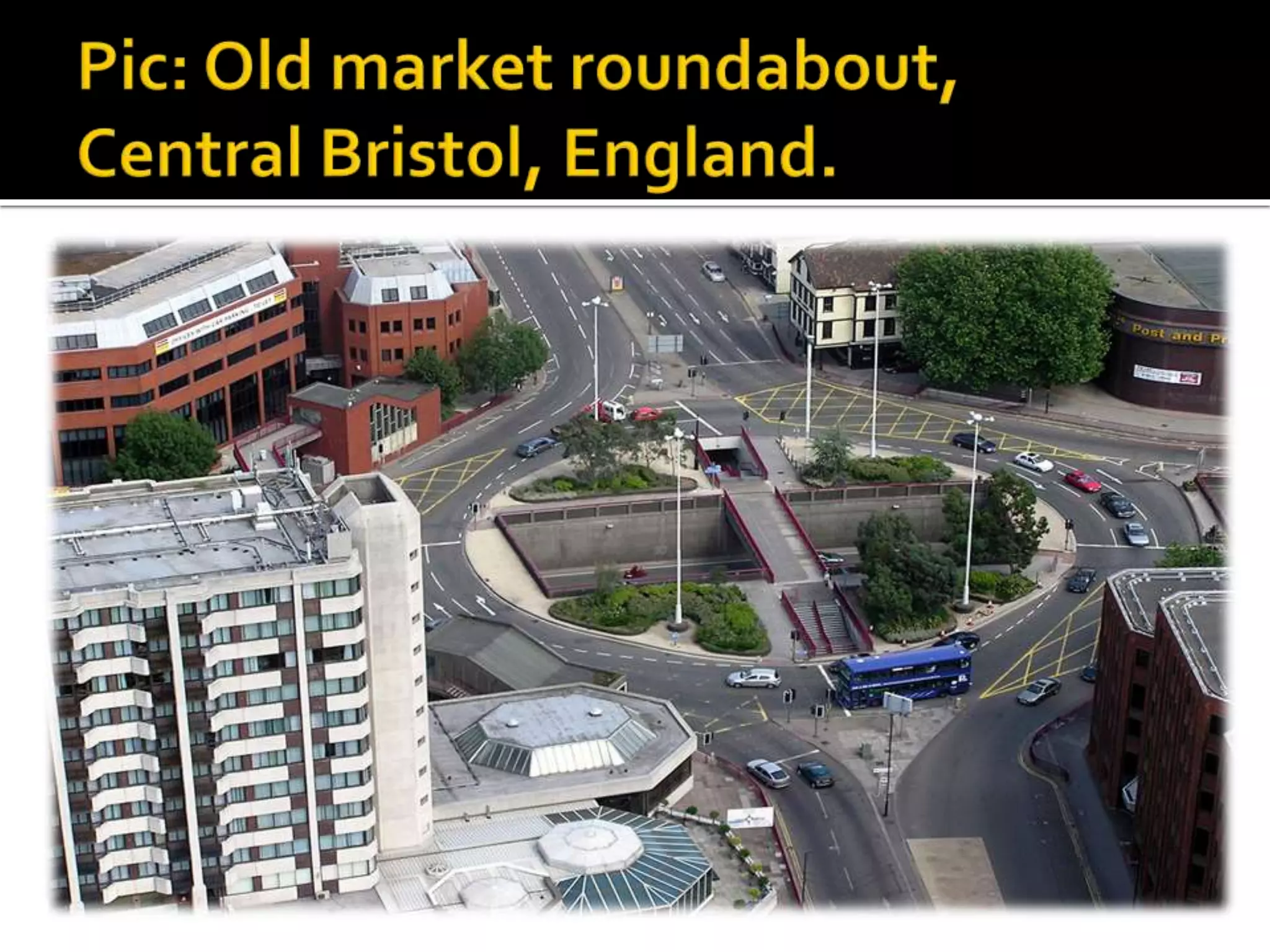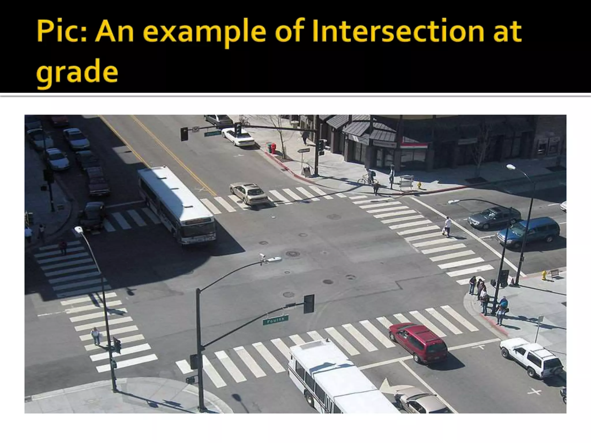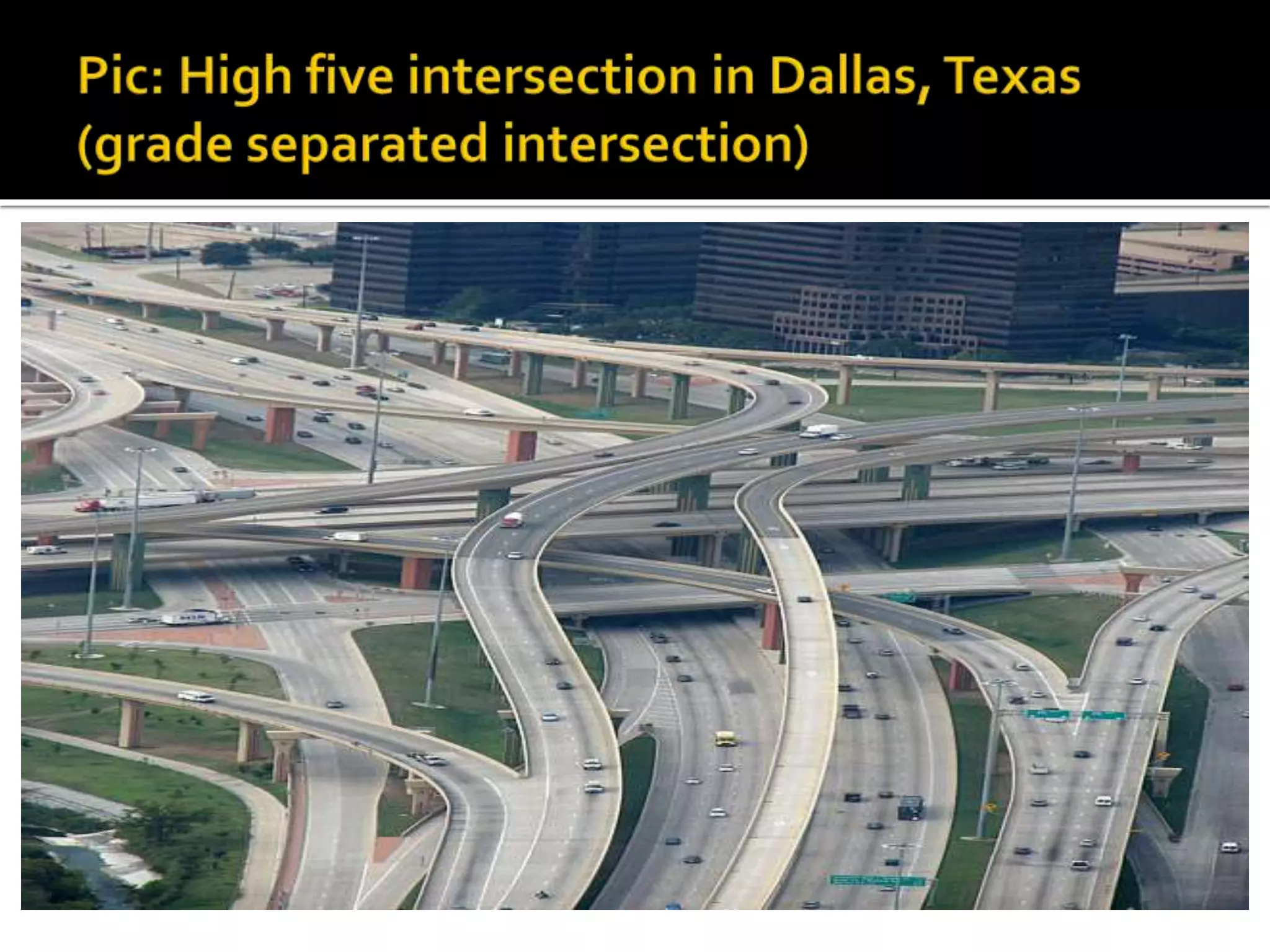 This document discusses different types of intersections, focusing on rotary intersections. It defines a rotary intersection as a special form of at-grade intersection where traffic circulates around a central island in a clockwise direction. The key design elements of a rotary are then outlined, including entry and exit radii, island radius, width, and weaving length. A formula from the Transportation Road Research Lab is presented for calculating a rotary's capacity based on the weaving section with the highest proportion of weaving to non-weaving traffic. An example problem demonstrates how to use the formula to determine a rotary's capacity.