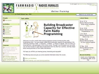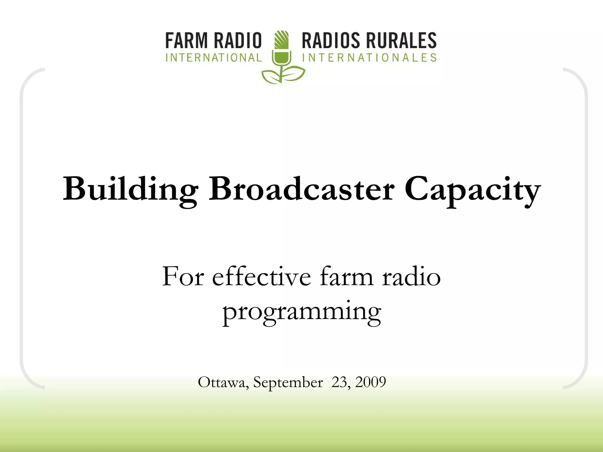 1) The document discusses a training and capacity building program for radio broadcasters in Africa to help smallholder farmers through effective farm radio programming.