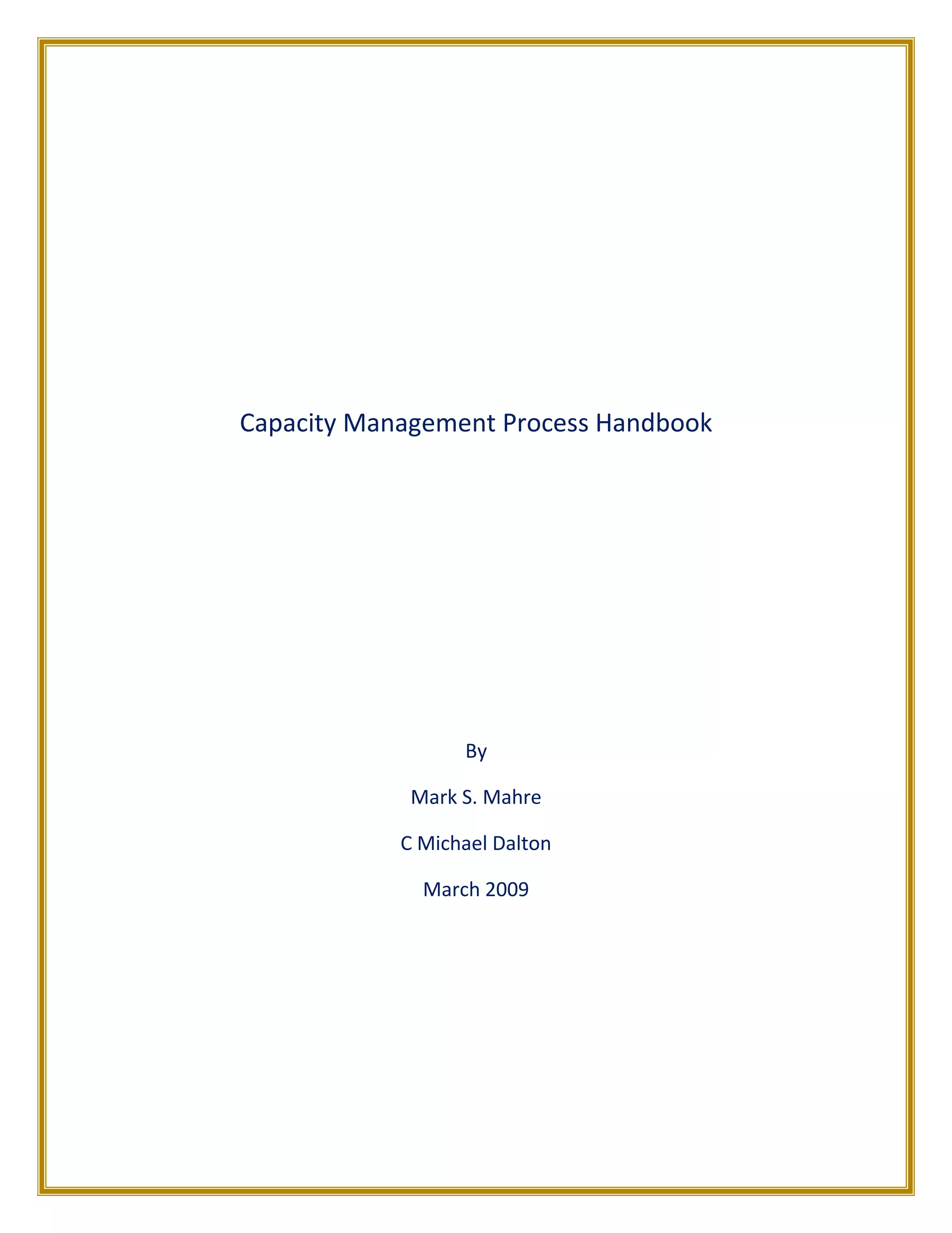 This document provides an overview of capacity management processes and concepts. It discusses key ITIL processes like incident management, problem management, change management and others. It then focuses on capacity management, describing the different levels of capacity planning from business to service to component. The document outlines the key activities, roles and artifacts of a capacity management process. It also discusses concepts like capacity planning, storage capacity planning and capacity models.