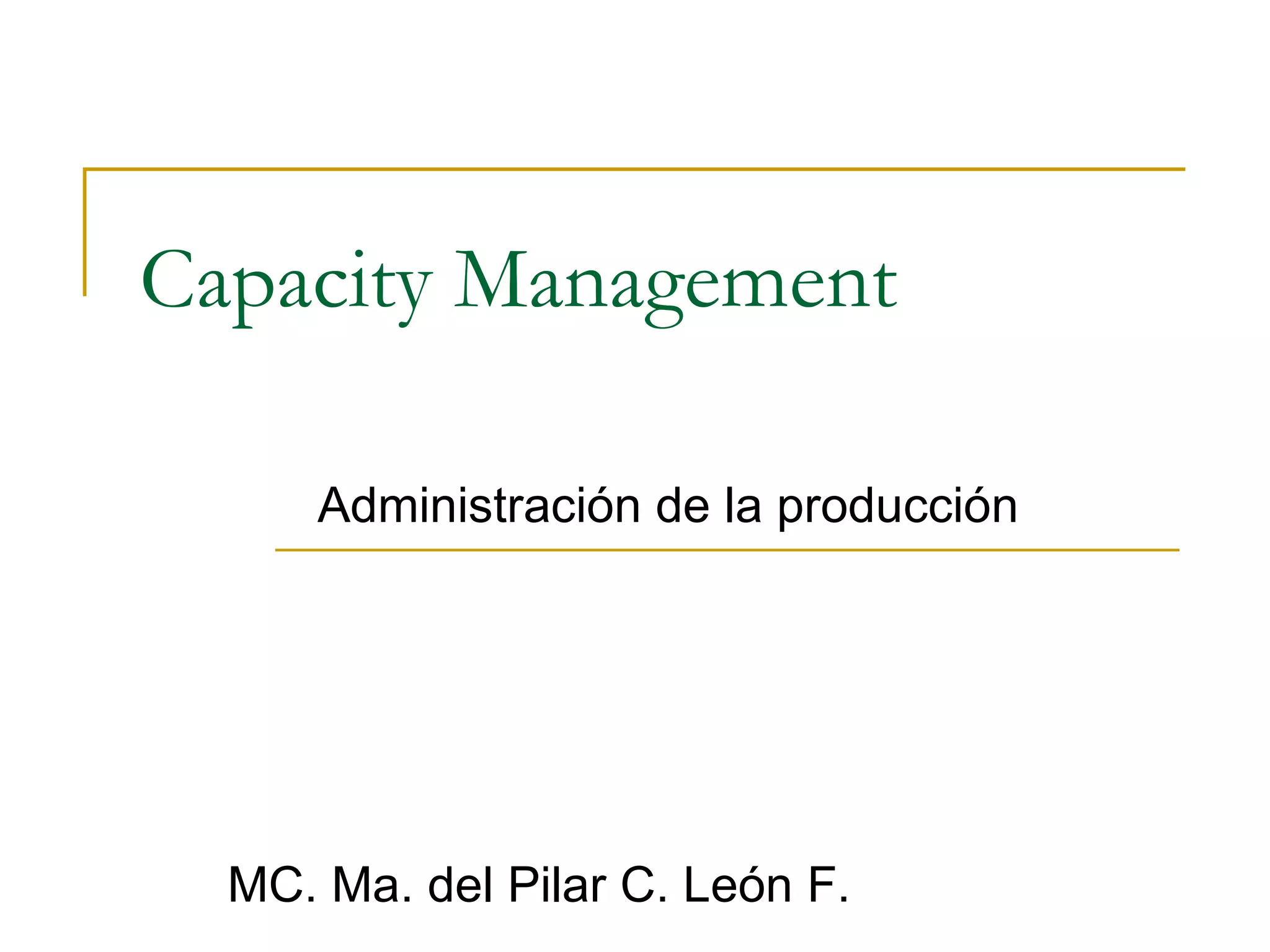 Capacity management involves determining the capacity needed to meet production plans, providing that capacity, and monitoring and controlling capacity. It includes capacity planning, requirements planning, and control. Capacity planning calculates capacity needs, identifies ways to make capacity available, and balances capacity and load. Capacity requirements planning determines detailed resource needs at work centers to achieve production goals.