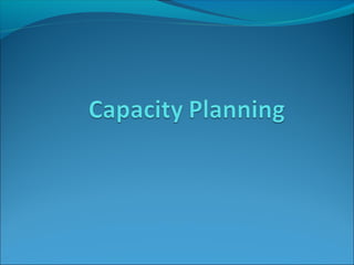 The document discusses capacity planning, highlighting its importance in determining a facility's output rate, ability to meet demand, and overall competitiveness. It defines key terms such as design capacity, effective capacity, and actual output, while also explaining the concepts of utilization and efficiency in measuring capacity. Additionally, it outlines the capacity planning process, determinants of effective capacity, and includes methodologies like cost-volume analysis and waiting-line analysis to assist in decision-making related to capacity constraints.