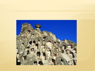 Göreme National Park and the Rock Sites of Cappadocia are located in Nevşehir Province, Turkey. Over 60 million years, soft layers of lava and ash erupted from volcanoes like Erciyes, Mount Hasan and Güllüdağ, covering the area and slowly eroding to form the whimsical fairy chimneys and caverns that Cappadocia is known for. The area has been protected as a UNESCO World Heritage Site since 1985 and features landmarks like Eğri Minare, Ürgüp, Uçhisar, Avanos, Göreme, Çavuşin and Ortahisar as well as the Ihlara Valley