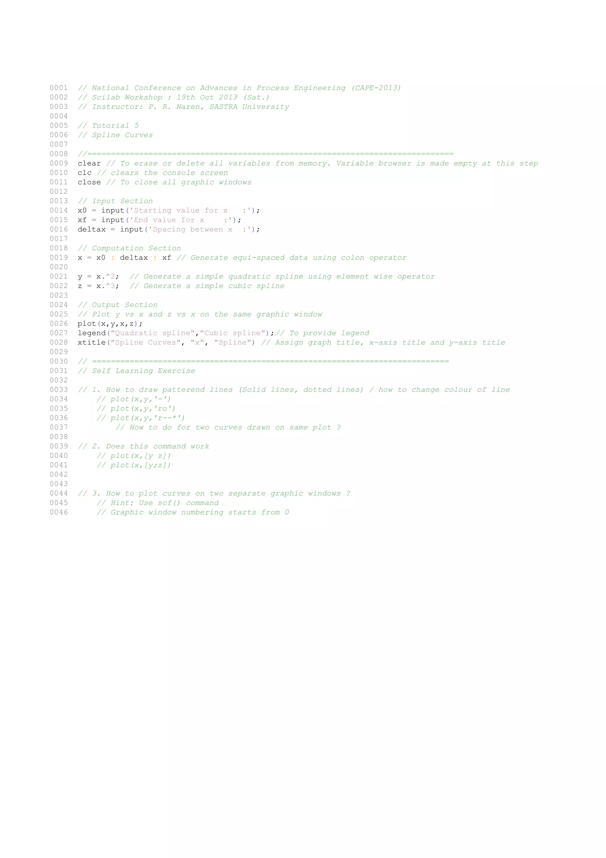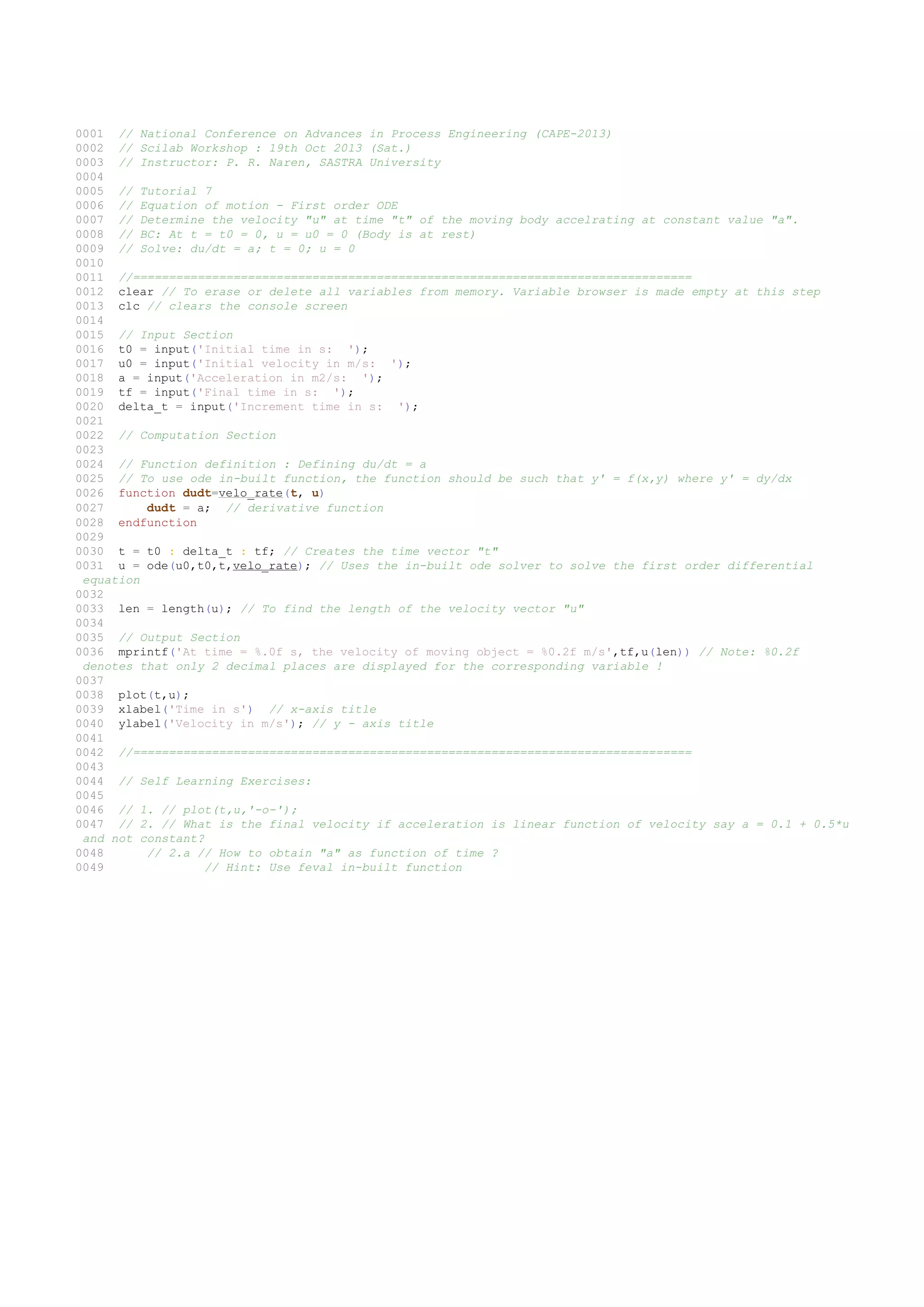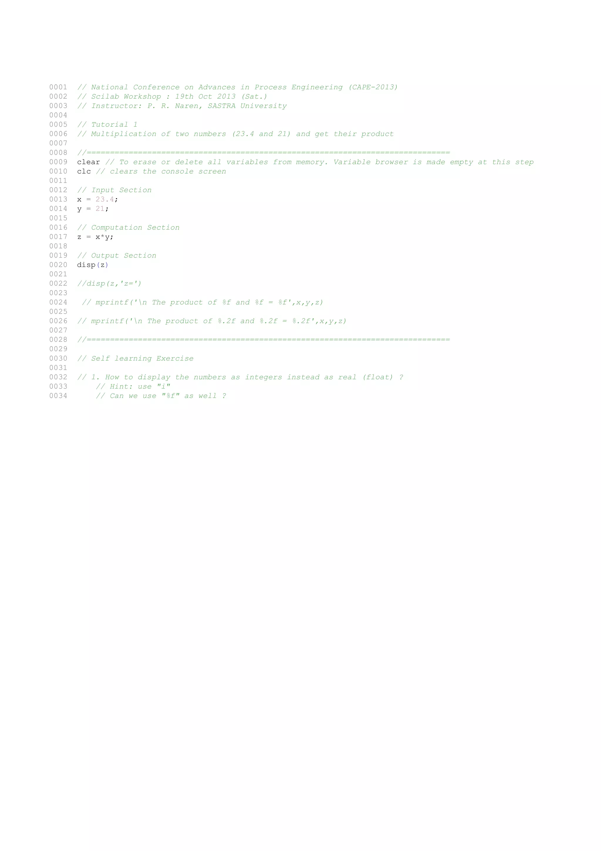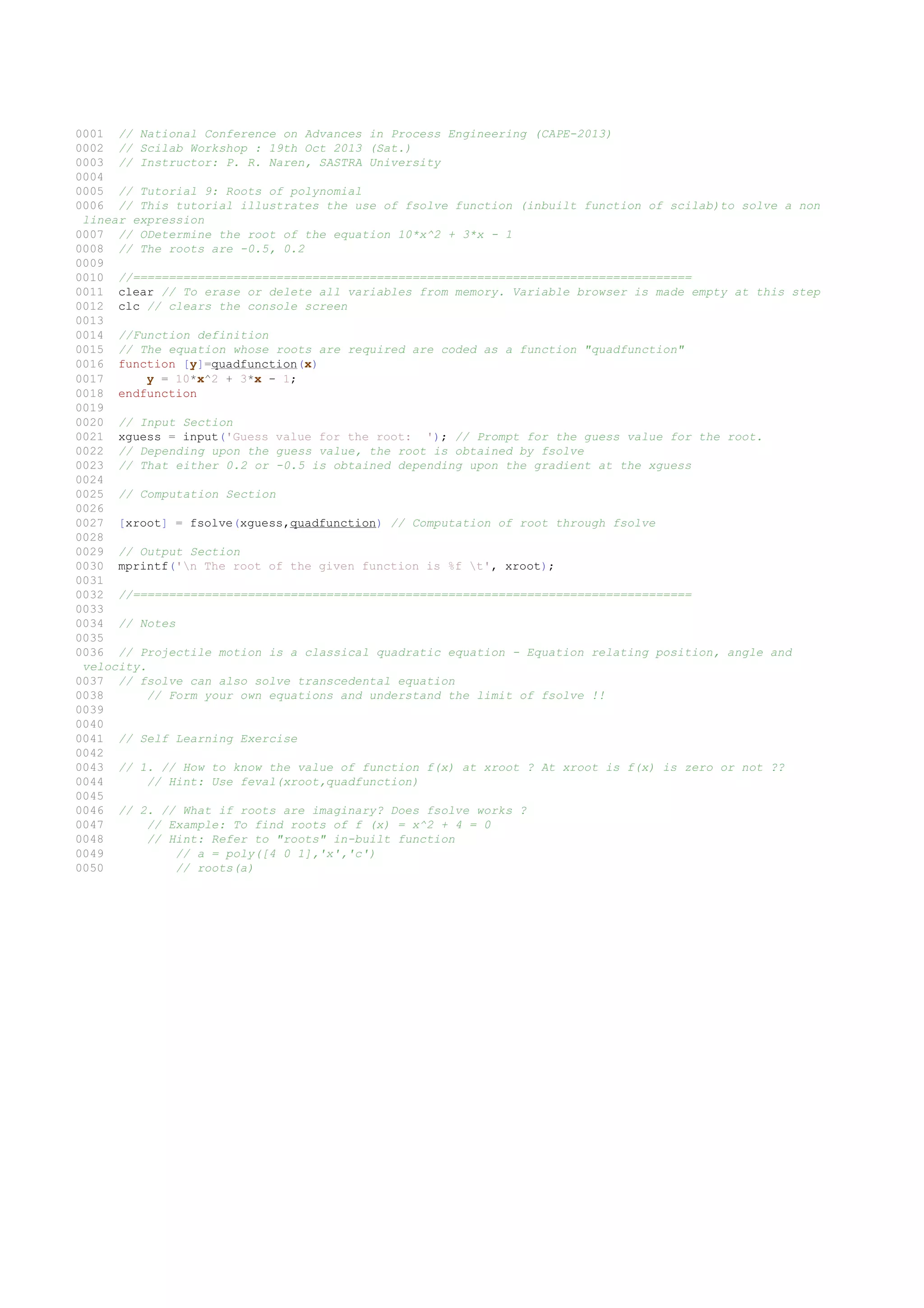 This file contains the Scilab scripts pertaining/ referred in Scilab presentation