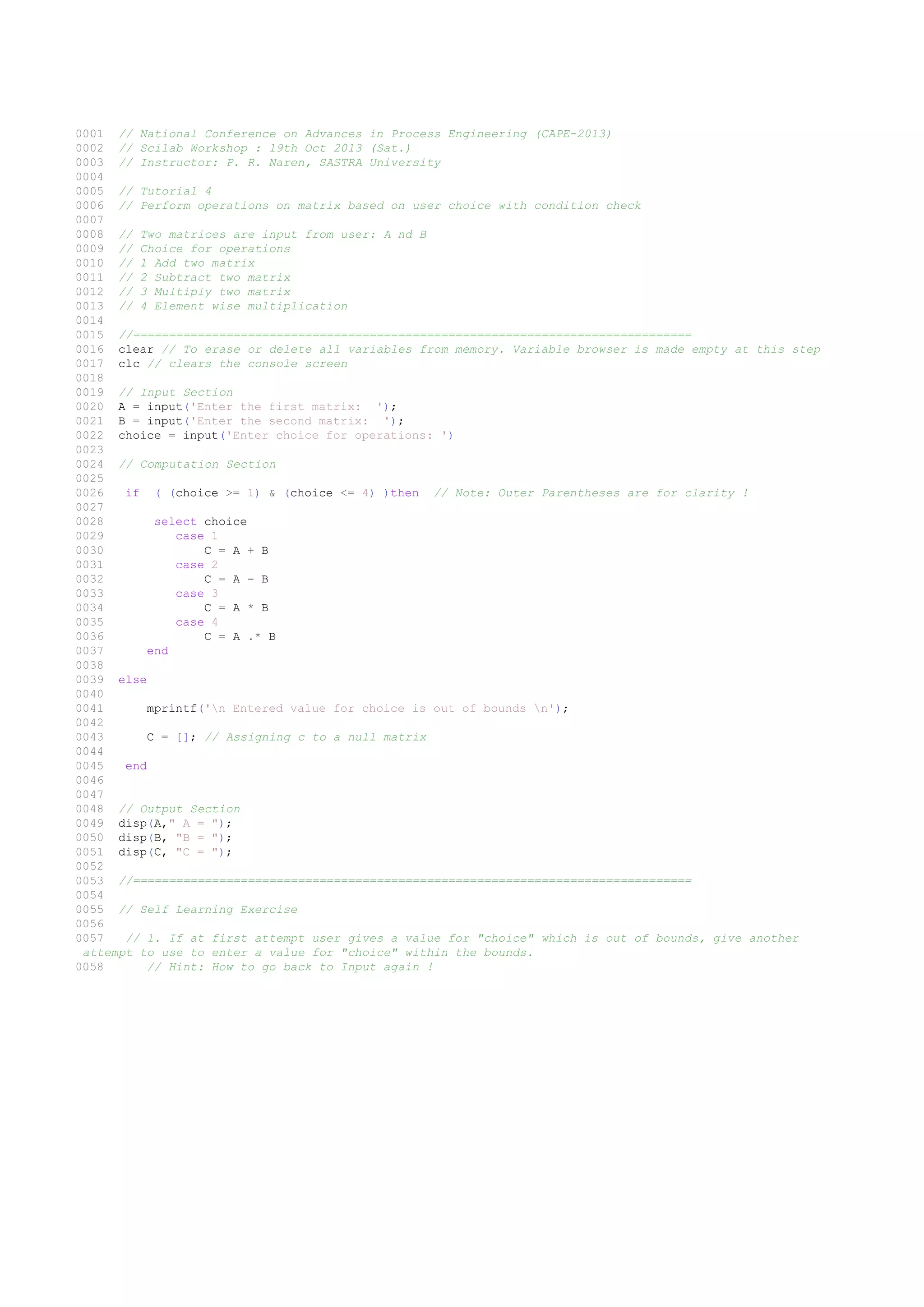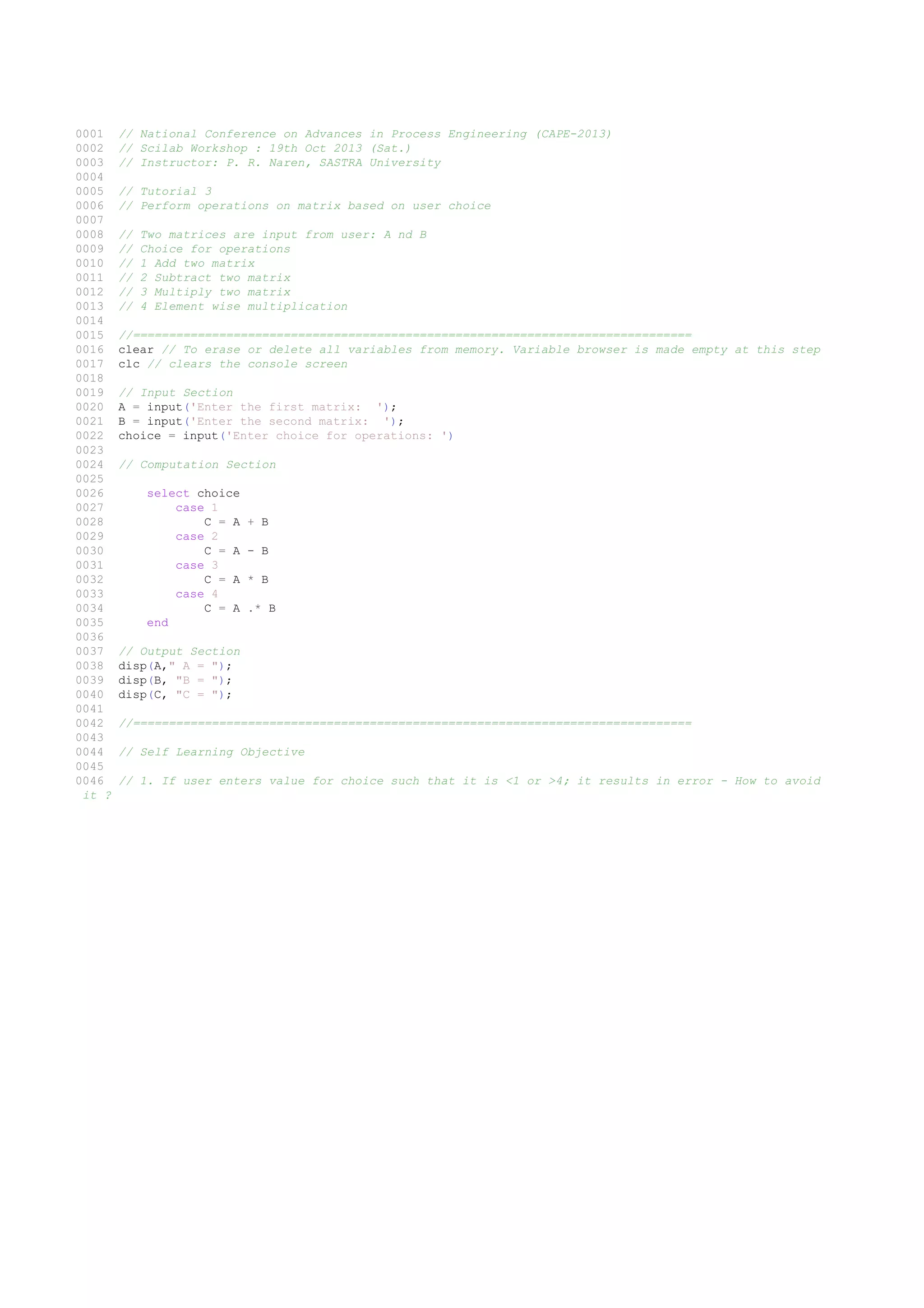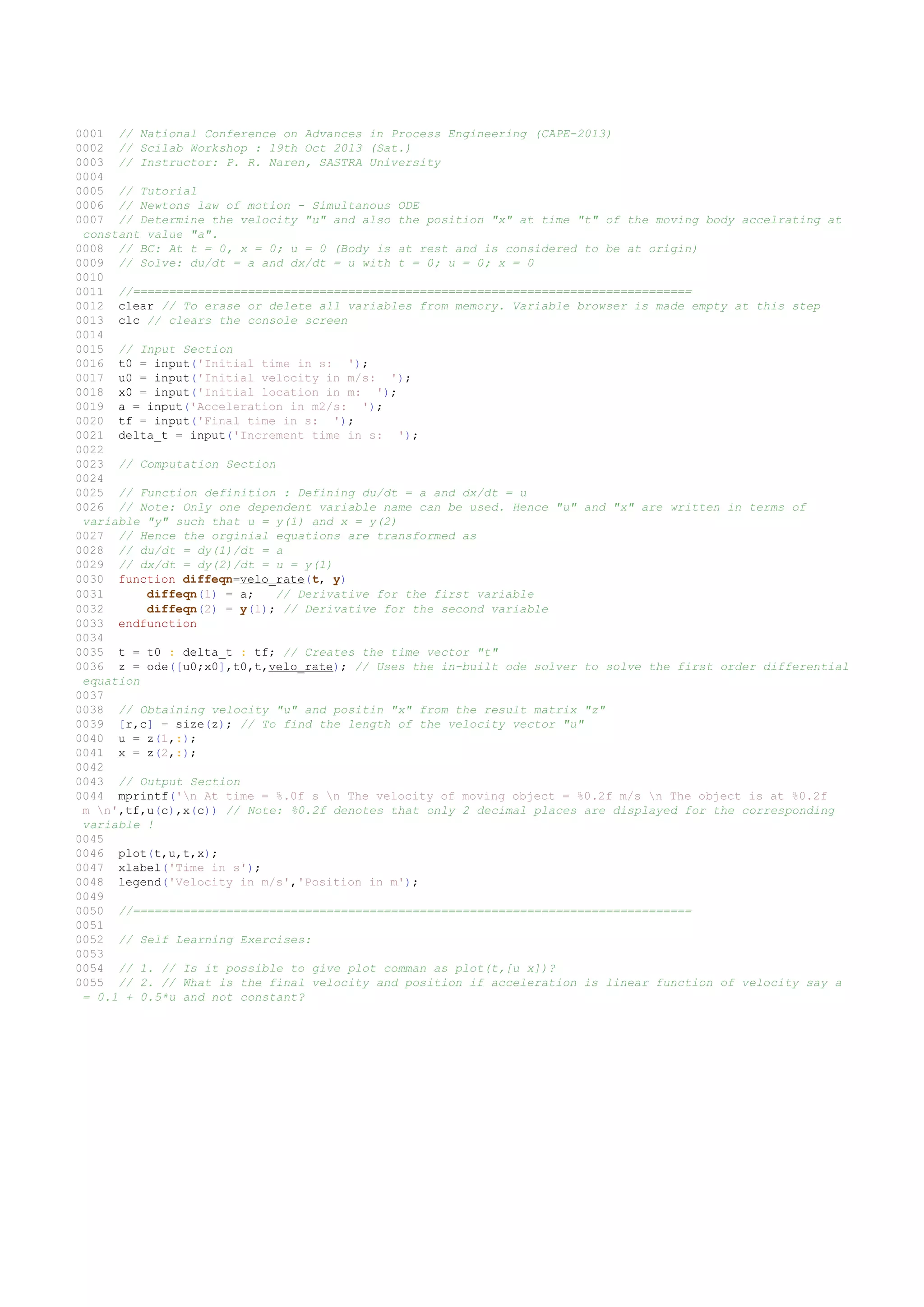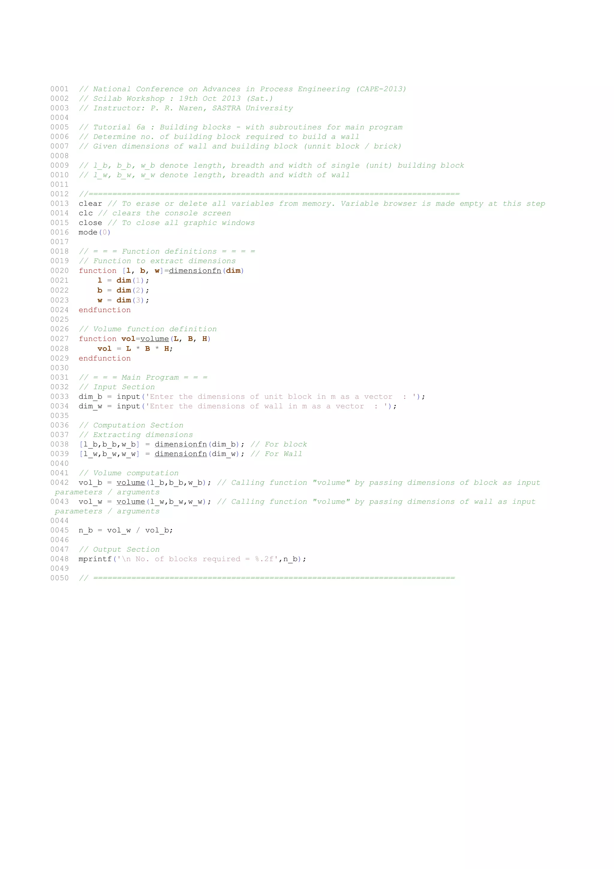 This file contains the Scilab scripts pertaining/ referred in Scilab presentation