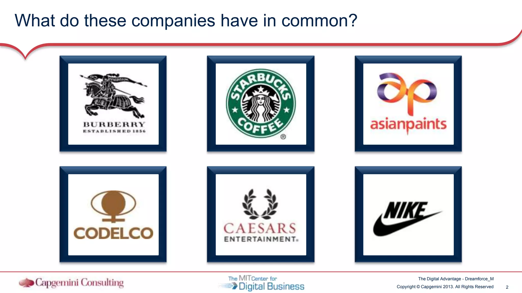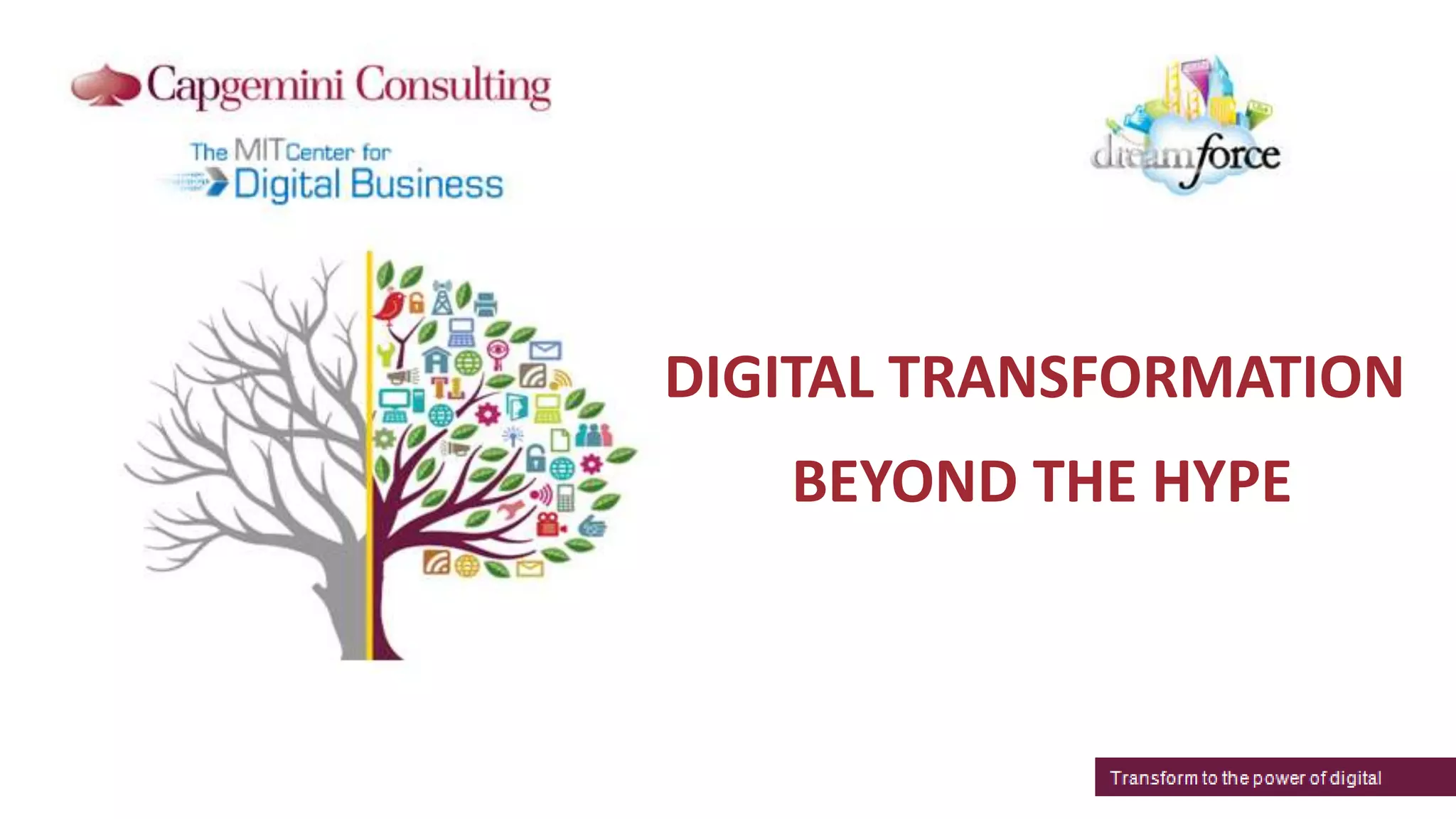 This document discusses digital transformation and digital mastery. It defines digital mastery as having strong capabilities in both technology-enabled customer and internal experiences as well as leadership capabilities like vision and governance. Companies are classified into four levels of digital mastery: digital masters, conservatives, fashionistas, and beginners. Digital masters achieve higher financial performance and market valuation through strategically focusing investments on key digital capabilities and leadership practices like having a chief digital officer. The document provides recommendations for companies to assess their digital maturity, develop a vision, build a digital roadmap, and engage their organization to drive successful digital transformation.