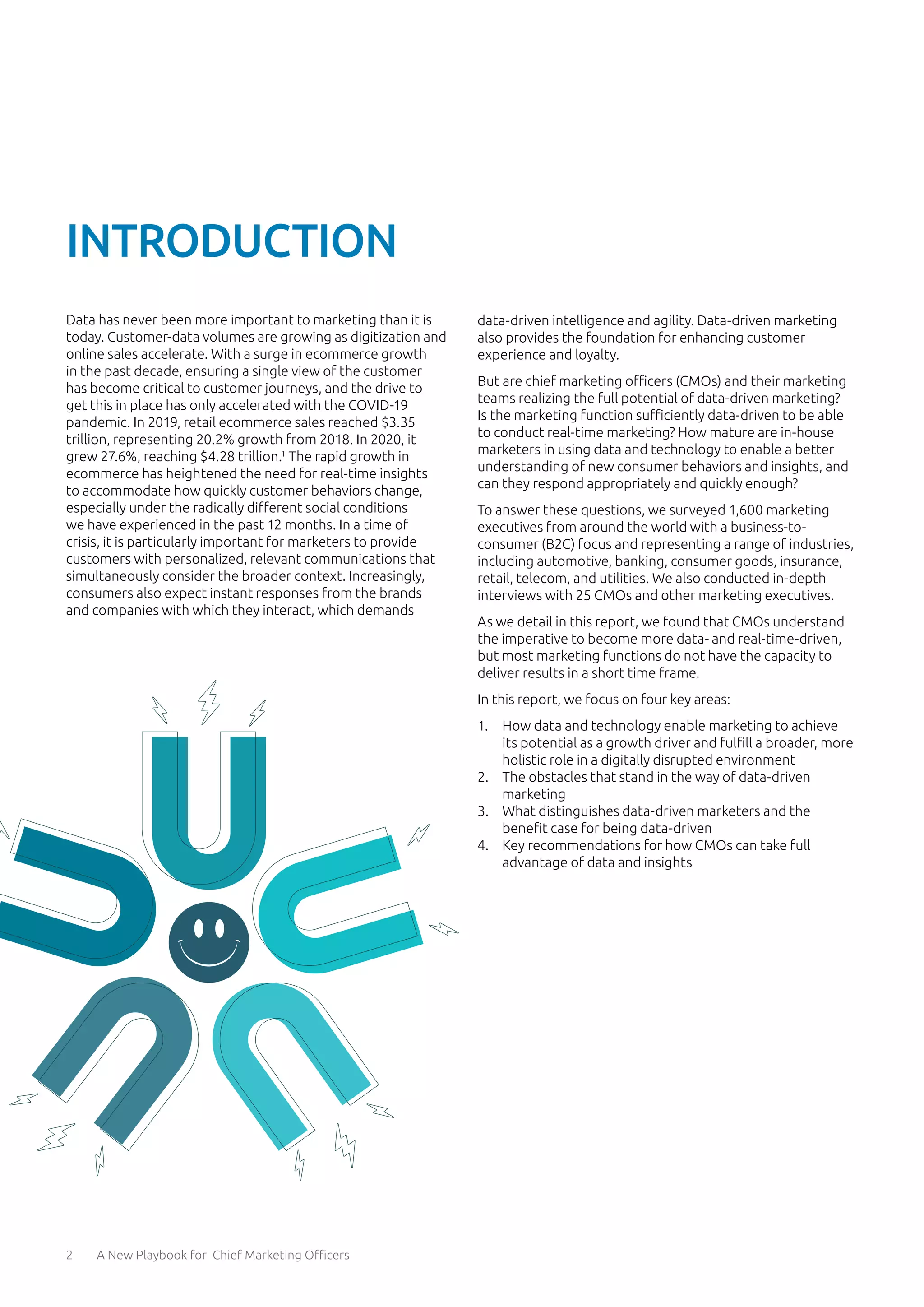 The document discusses the importance of real-time marketing and data-driven strategies for Chief Marketing Officers (CMOs) to drive sustained growth in the evolving digital landscape. It outlines challenges faced by marketing teams in leveraging data and technology effectively, and highlights the need for improved capabilities and skillsets. The report suggests key recommendations for CMOs to harness data and insights to enhance customer engagement and maintain a competitive edge.