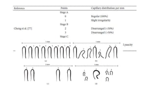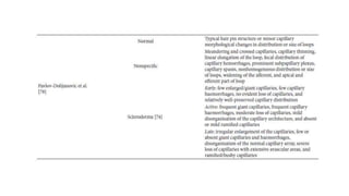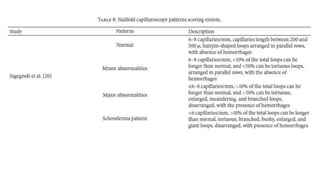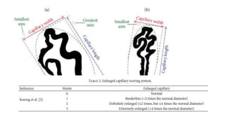 Nailfold capillaroscopy is a valuable, non-invasive diagnostic tool used in rheumatic diseases to detect microvascular changes and differentiate between primary and secondary Raynaud's phenomenon. The procedure involves careful examination under an incident light microscope and the use of videocapillaroscopic systems to assess capillary characteristics such as distribution, shape, density, and dimensions. Proper techniques and patient preparation are critical to ensure accurate measurements and interpretation of results.
