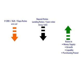 - When reverse repo rate is increased, it provides more incentive for commercial banks to park their funds with the central bank, thus decreasing the money available in the market.