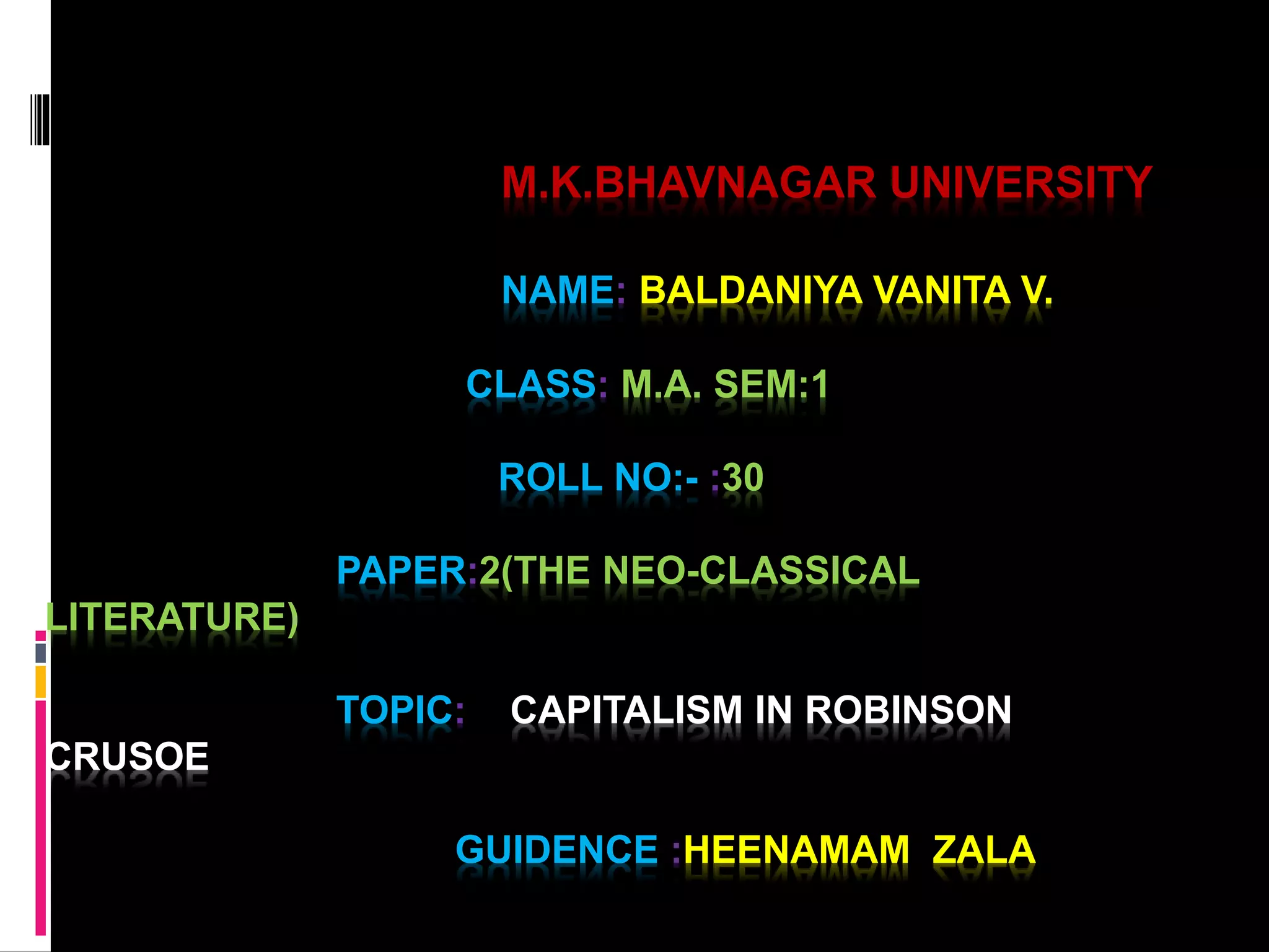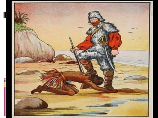 This document provides an analysis of capitalism as depicted in Daniel Defoe's novel Robinson Crusoe. It argues that Crusoe represents early capitalism as a self-made man who uses work ethic, common sense, and technology to fashion his environment to meet his needs. Crusoe stockpiles goods, keeps records, and sets Man Friday to work on the island, acting as a prototype British colonist and capitalist. The document also discusses how Karl Marx critiqued Defoe's fantasy from his own economic perspective in his work Capital.