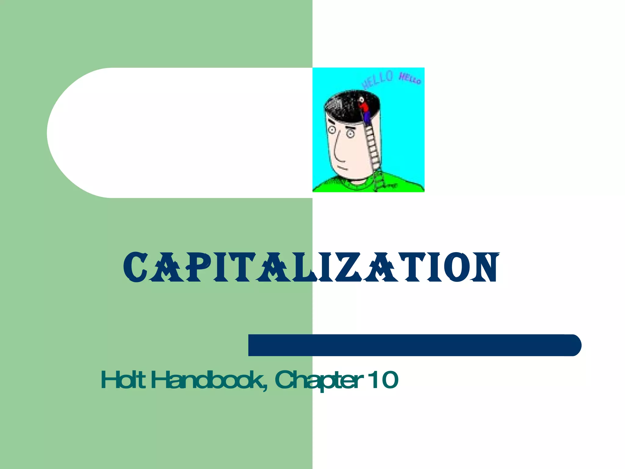 The document provides guidelines for capitalization in the English language. It details which words should be capitalized in sentences, quotes, letters, proper nouns, names of people and places, events, documents, brands, planets, vehicles, awards, buildings, school subjects, titles, works of literature and more. Capitalization rules are provided for titles before names, family relationships used as names, and specific words in titles of literary works.