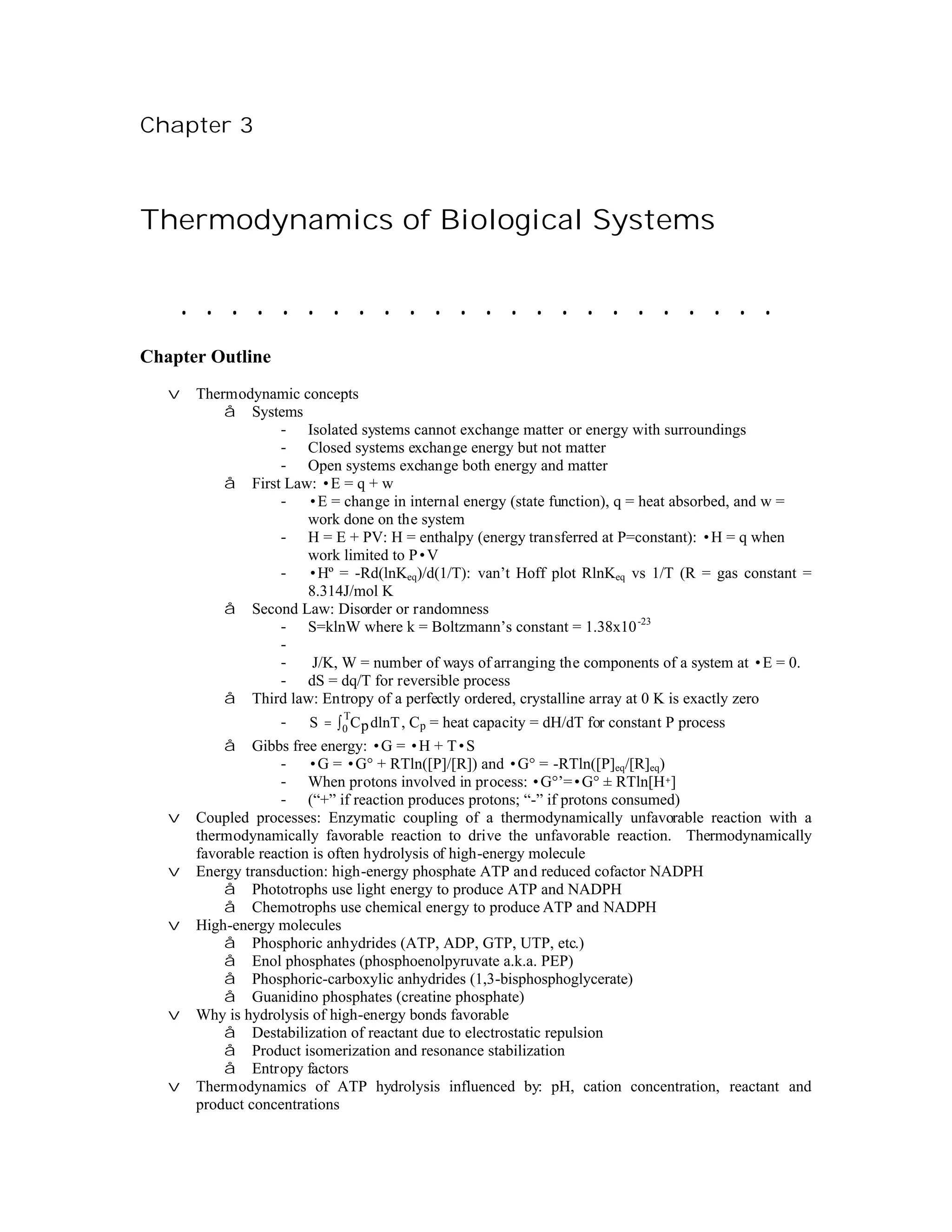 The chapter discusses coupled processes that drive unfavorable reactions, energy transduction via ATP and NADPH, and high-energy molecules like phosphates. Hydrolysis of high-energy bonds