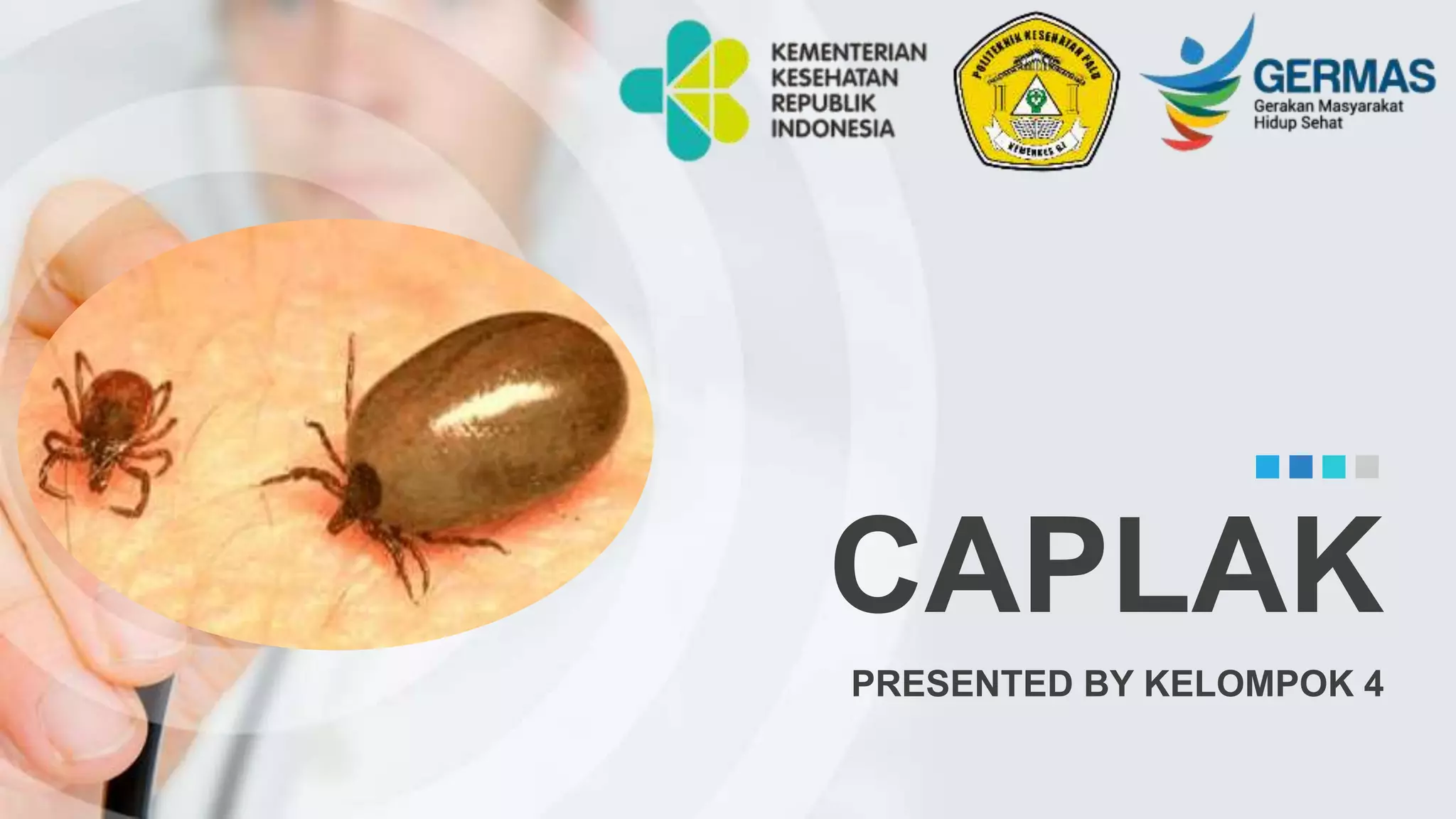 Dokumen ini membahas tentang caplak, hewan kecil penghisap darah yang tergolong dalam ordo arachnoidea, termasuk siklus hidup, morfologi, habitat, dan penyakit yang ditularkan seperti demam Q dan Lyme. Caplak berperan sebagai parasit luar yang dapat menginfeksi vertebrata dan memiliki beberapa klasifikasi, serta memerlukan pengendalian melalui akarisida dan metode lingkungan. Penanganan yang tepat diperlukan untuk melindungi hewan ternak dan kesehatan manusia dari potensi bahaya yang ditimbulkan oleh caplak.