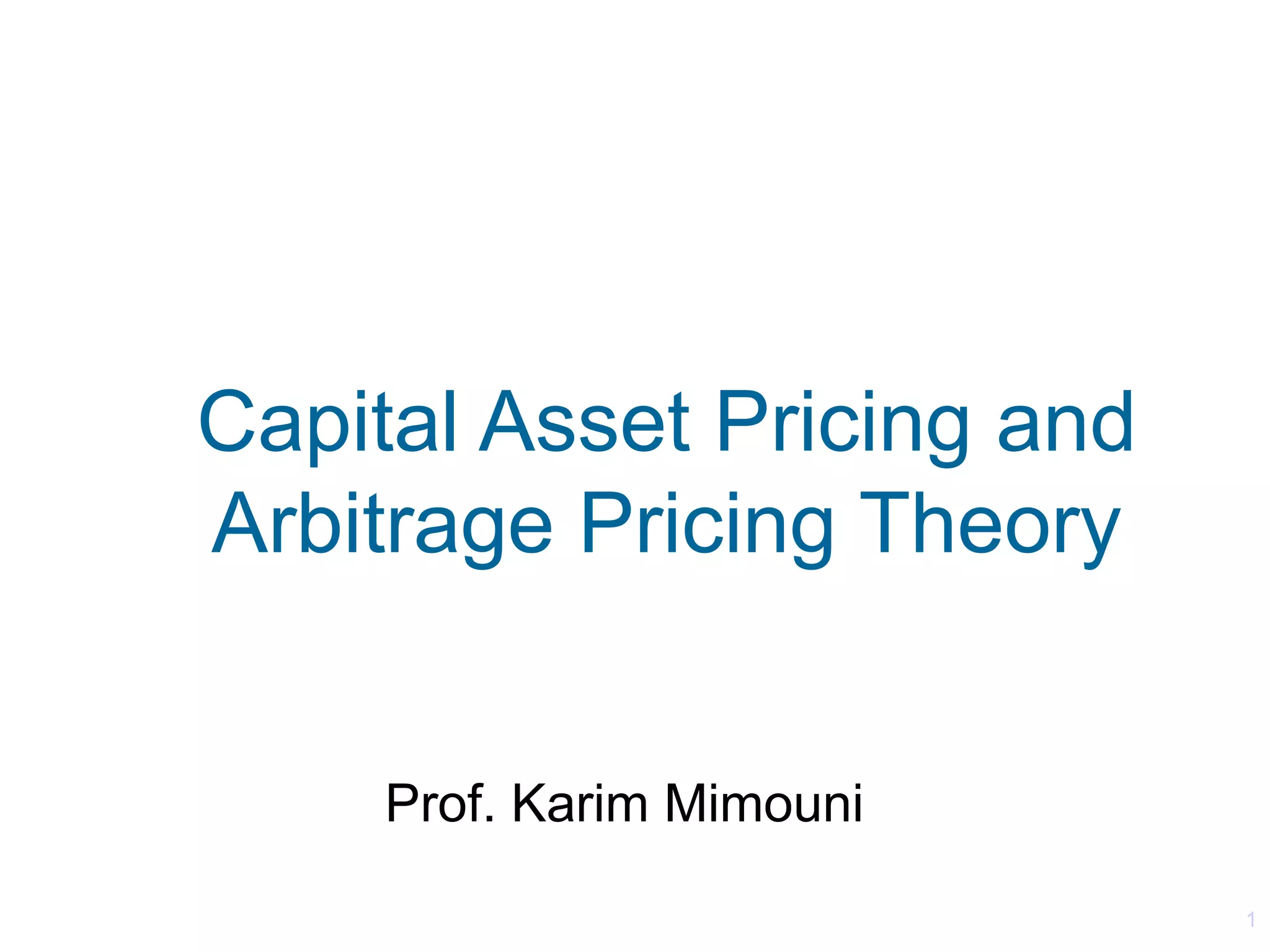 The document discusses the Capital Asset Pricing Model (CAPM) and Arbitrage Pricing Theory (APT). It outlines the key assumptions and results of CAPM, including that all investors hold the market portfolio and the security market line relates individual security risk premiums to market risk premiums through beta. It also discusses limitations of CAPM and how multifactor models like Fama-French can better describe returns. Finally, it explains how APT allows for arbitrage opportunities if mispriced portfolios exist and its relationship to CAPM.