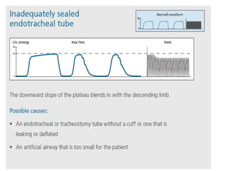 Capnography and plethysmography are techniques for monitoring patients. Capnography uses infrared spectroscopy to measure the concentration of carbon dioxide in exhaled breath over time through a capnometer. This allows assessment of ventilation, perfusion, and metabolism. Plethysmography uses photoplethysmography and oximetry principles to noninvasively measure oxygen saturation in arterial blood through a pulse oximeter. Both techniques provide important physiological information to monitor patient status during medical procedures or illness.