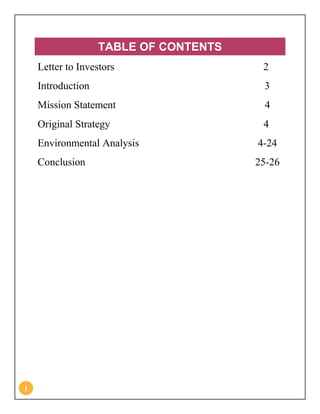The document is an annual report for Digby Sensors covering years 2013-2022. It discusses the company's original strategy of being a cost leader focused on product life cycle. Digby launched one product initially and revised it to target the high-tech market in years 1-2. The company invested heavily in marketing and sales for this product but forecast sales conservatively, limiting accessibility and sales. Digby aimed to lower costs and prices through increased automation to gain market share over time.