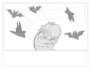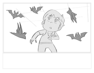 The document appears to be a dialogue between Tomas and other characters. Tomas needs to sneak into a cave to retrieve a mushroom but is worried the other characters' hiccups will wake up the bats. Tomas comes up with a plan to have the others hiccup to distract the bats while he sneaks in. With the help of his friends hiccuping, Tomas is able to retrieve the mushroom. Santiago congratulates Tomas and they go to make soup with the mushroom.
