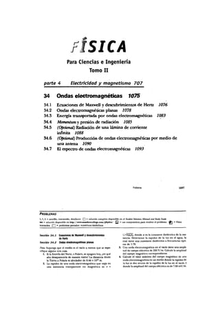 Chapter 34 provides a series of solutions related to physics, including calculations involving the speed of light, frequency, wavelength, and the Poynting vector. It addresses various equations and principles regarding electromagnetic waves, energy density, power transmission, and effects of distance on signal strength. The chapter concludes with practical examples illustrating concepts such as efficiency of power output and radiation pressure.