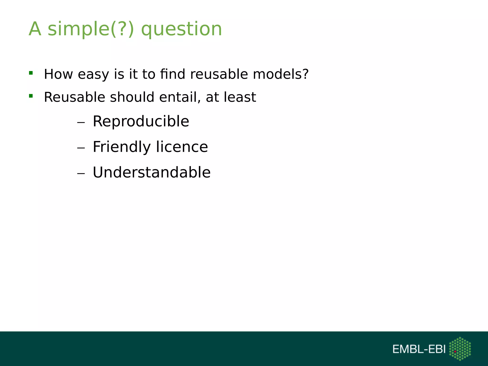 The document discusses challenges in finding reusable and reproducible modeling data, focusing on model identification and standardization. It highlights the evolution from Web 1.0 to Web 3.0, emphasizing the importance of semantic frameworks and unique identifiers for scientific data. The Identifiers.org project is introduced as a solution for providing stable and resolvable URIs for scientific data, alongside discussions on model curation and annotation.