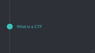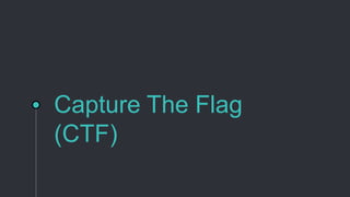 Capture the Flag (CTF) is a gamified cybersecurity competition that allows participants to learn penetration testing through hands-on challenges, which include finding vulnerabilities in systems or web applications. There are three types of CTFs: jeopardy, attack and defense, and boot2root, each focusing on different skills and collaborative experiences. Real-life applications of CTFs include pentesting for companies and participating in bug bounty programs on platforms like HackerOne and Bugcrowd.