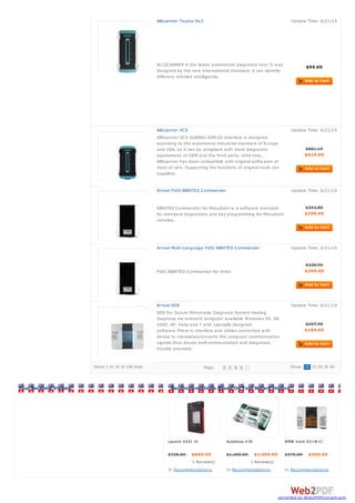 This document provides information about various automotive diagnostic tools from a company that sells diagnostic equipment. It includes a list of 106 diagnostic tools showing the product name, price, and update time. It also includes descriptions of several of the diagnostic tools including the ALLSCANNER, AllScanner VCX, ABRITES Commander for Mitsubishi, and SDS for Suzuki Motorcycle Diagnosis System. The document aims to provide customers information about the diagnostic tools for sale.