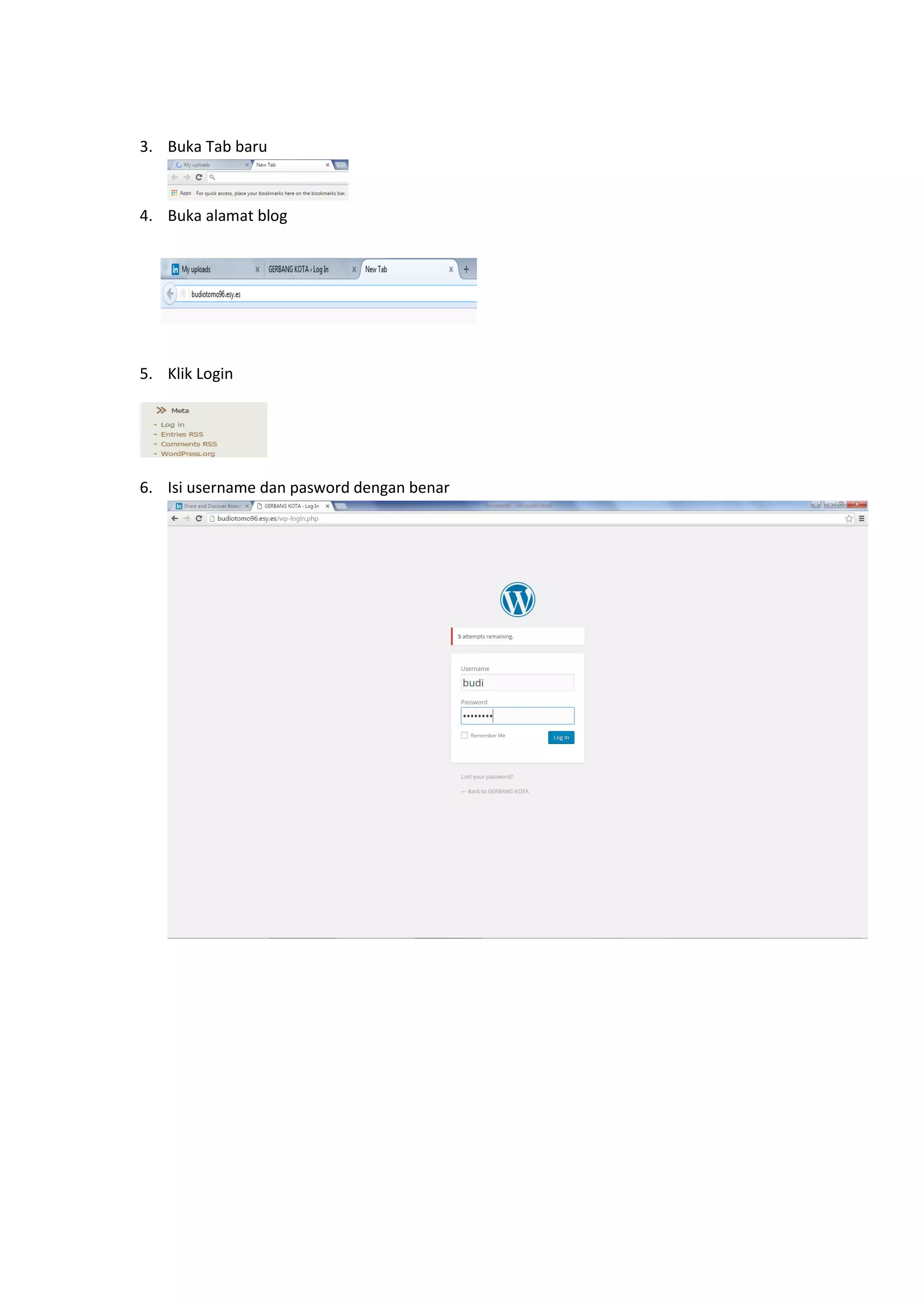 Dokumen ini memberikan langkah-langkah untuk menyisipkan file dari Slideshare ke blog. Prosesnya meliputi login ke Slideshare, memilih blog, dan menyalin kode embed untuk dipaste ke halaman blog. Setelah mengikuti semua langkah, pengguna dapat memperbarui dan menyelesaikan penyisipan.