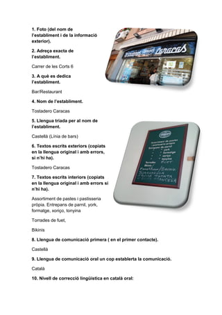 - Quina és la llengua dominant de l’establiment? Per què aquesta llengua i