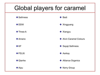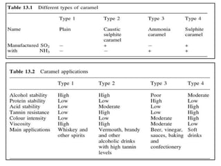 The document provides a comprehensive overview of caramelization, explaining the processes involved, the types of sugars that can undergo caramelization, and the physiological classifications of carbohydrates. It details different types of browning reactions, the flavors produced during caramelization, and the various classes of caramel based on preparation methods and ingredients used. Additionally, it highlights the importance of understanding sugar properties and caramel ingredients in the food industry.