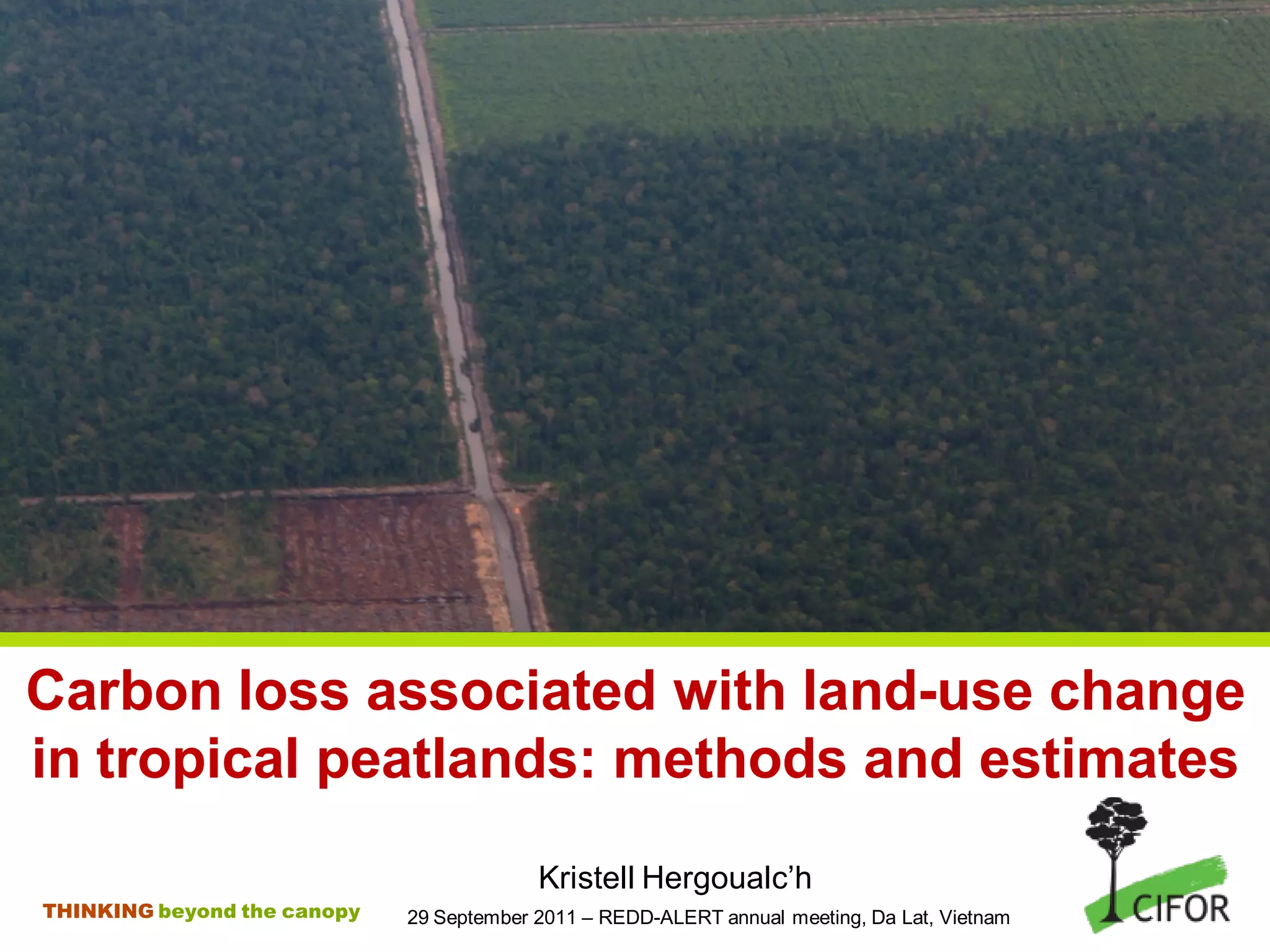 The document discusses carbon loss associated with land-use change in tropical peatlands, highlighting methodological approaches for estimating carbon stocks and fluxes. It reviews carbon loss data indicating that 60-90% of carbon loss primarily originates from peat, particularly during land-use changes such as conversion to oil palm plantations. The study emphasizes the need for improved greenhouse gas accounting methods specific to peat swamp forests and addresses gaps in understanding carbon cycling in these ecosystems.