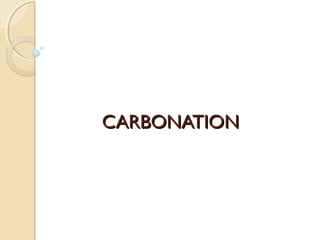 The document discusses the carbonation of concrete, a chemical reaction between carbon dioxide and lime that results in the formation of calcium carbonate. It outlines the detection methods for carbonation, factors affecting its rate, and the negative effects on concrete quality and steel reinforcement, including accelerated corrosion. Prevention strategies emphasize reducing porosity through lower water/cement ratios to mitigate carbonation risks.