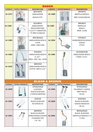 CARBONES ALTERNATIVOS PARA HERRAMIENTAS BOSCH BLACK & DECKER BORDEADORAS DOWEN PAGIO HITACHI COBY 1527