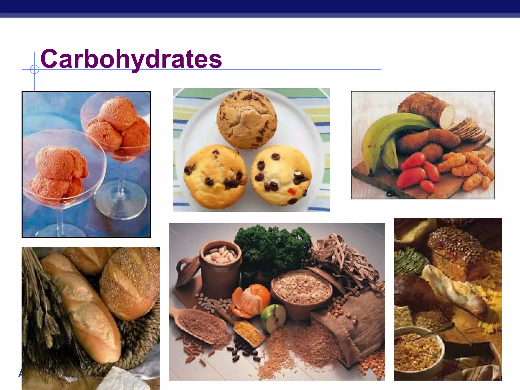 Carbohydrates are composed of carbon, hydrogen, and oxygen. They serve as energy storage molecules and structural materials. Monosaccharides like glucose are simple sugars that can combine through dehydration synthesis to form disaccharides like sucrose or polysaccharides like starch and cellulose. The structure of these carbohydrates, whether linear or branched, determines how quickly they can be broken down to release energy. While herbivores can digest starch, cellulose requires bacteria in the digestive system to break it down.
