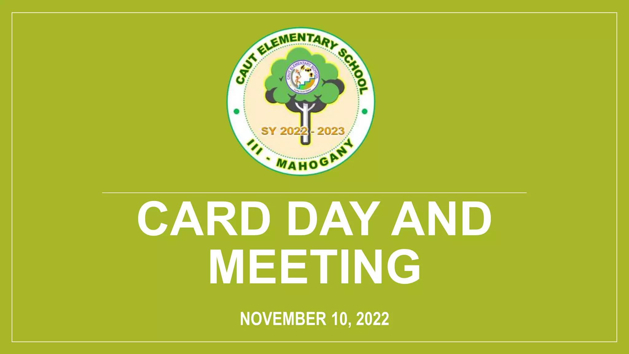 The document outlines an agenda for a card day and meeting scheduled for November 10, 2022. The agenda includes discussing the financial report, school ID, t-shirt printing, PE uniform, distributing cards, and awarding certificates. It also allows for discussion of other matters.