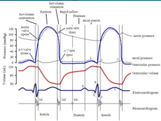 The cardiac cycle consists of relaxation (diastole) and contraction (systole) of the heart. Each cycle begins with an electrical impulse from the sinus node which causes atrial contraction and is recorded as the P wave on an ECG. Contraction of the ventricles follows, recorded as the QRS complex, pumping blood into the arteries. Ventricular relaxation is recorded as the T wave. The heart's pumping is regulated intrinsically via the Frank-Starling mechanism and extrinsically by the autonomic nervous system.