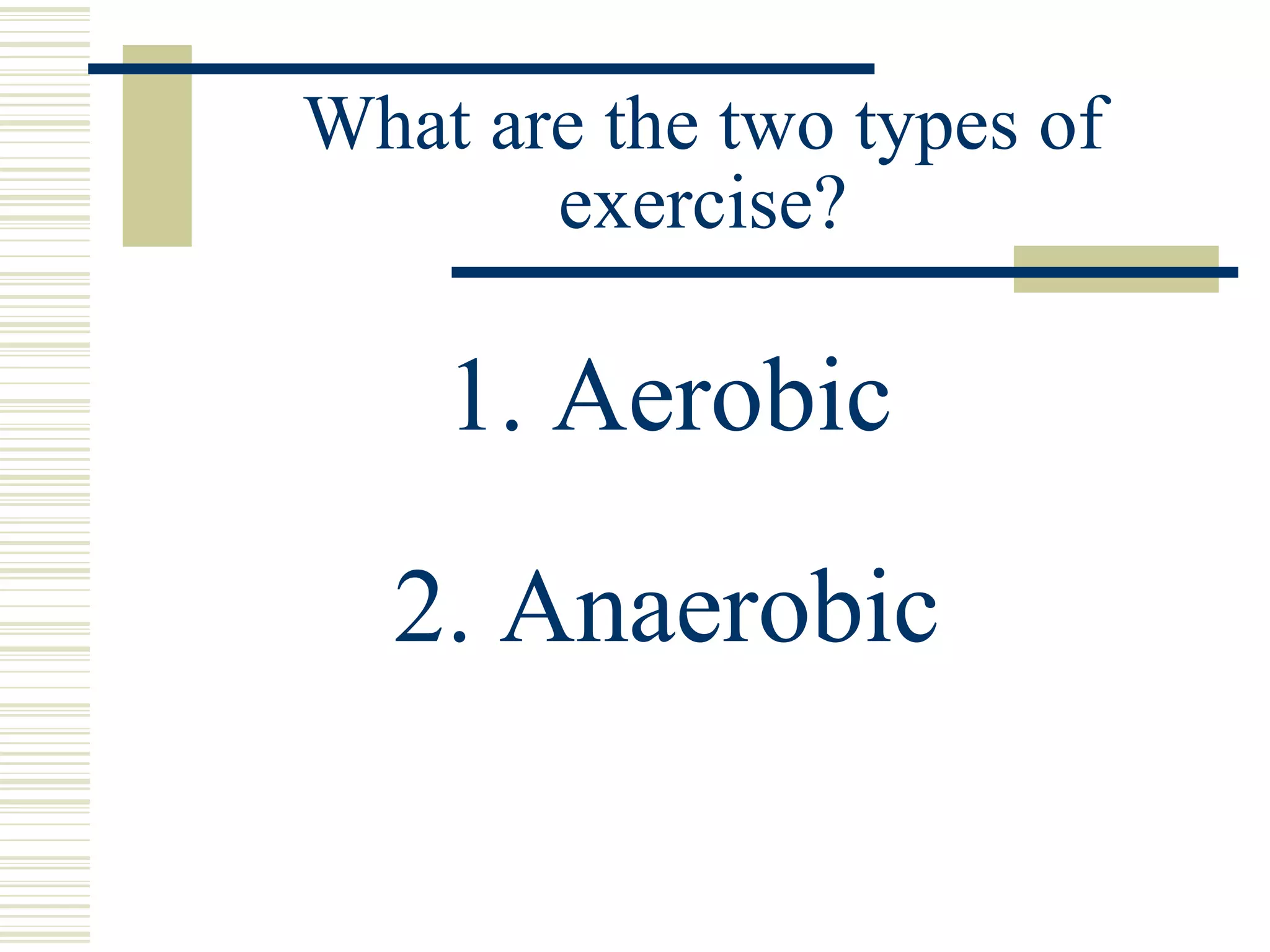 There are two main types of exercise: aerobic and anaerobic. Aerobic exercise uses oxygen and involves steady, rhythmic movements like walking or biking. Anaerobic exercise does not use oxygen and involves quick, explosive movements like sprinting. When the body exercises, it breaks down carbohydrates, fats, and proteins to produce ATP, which provides energy. Exercise affects many body systems including increasing heart and lung function, improving blood flow, enhancing immune function, and relieving stress.