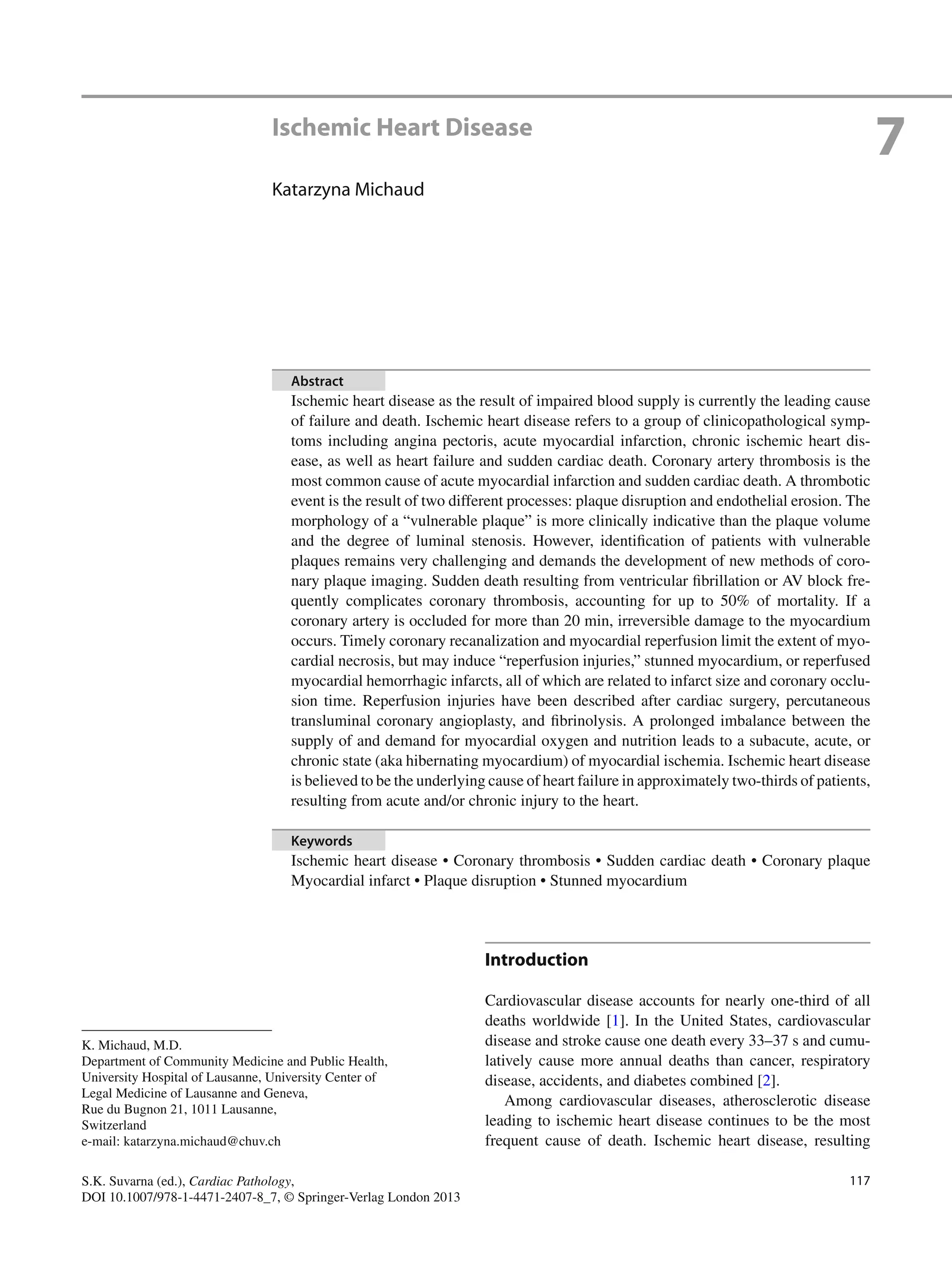 Ischemic heart disease, resulting from impaired blood supply to the heart, is currently the leading cause of cardiovascular disease death worldwide. It refers to conditions including angina, heart attack, chronic heart disease, heart failure and sudden cardiac death. The most common cause is coronary artery atherosclerosis and thrombosis, usually resulting from plaque rupture or erosion in the arteries. Vulnerable plaques are prone to rupture due to characteristics like a thin fibrous cap and large lipid core, exposing thrombogenic materials and narrowing the artery. Timely reopening of the blocked artery is crucial to limiting heart muscle damage from lack of blood flow.