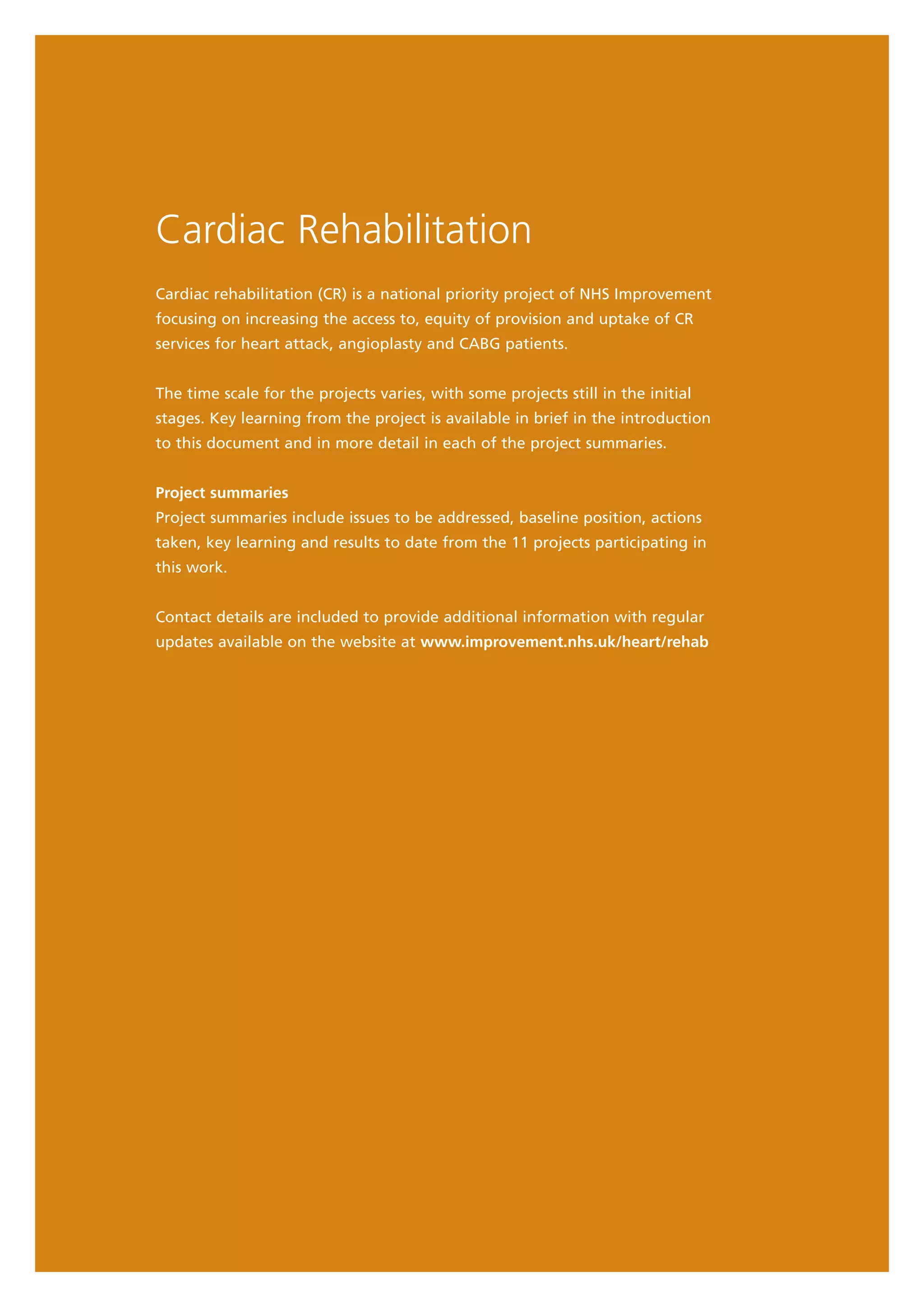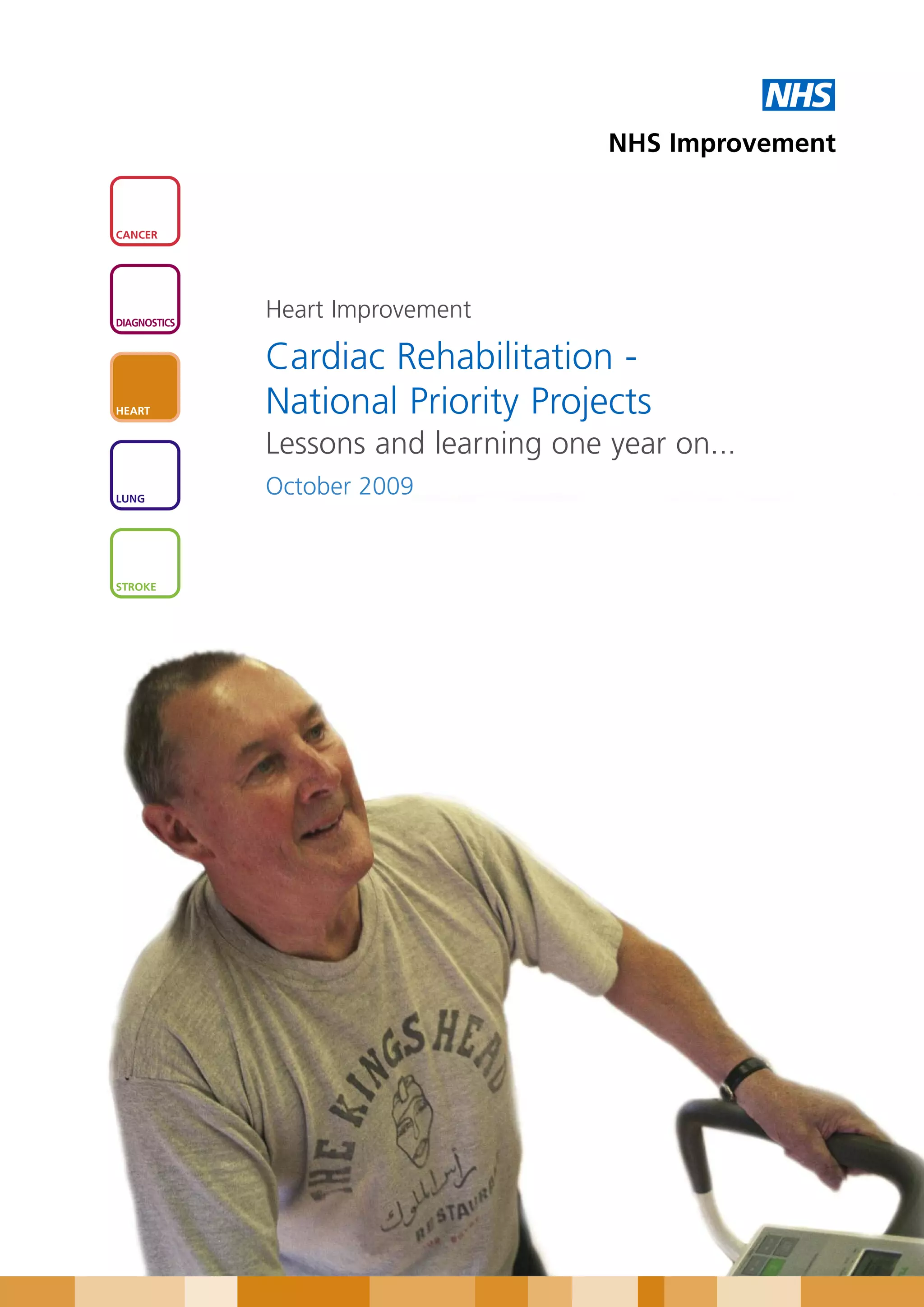 The document outlines the NHS Improvement's national priority projects for cardiac rehabilitation, aiming to enhance access, equity, and uptake of services for patients with heart conditions. Key lessons learned include the importance of strong clinical leadership, effective data use, and engaging stakeholders, which have been instrumental in driving improvements in service provision. Additionally, the document emphasizes addressing inequalities and enhancing patient choice in rehabilitation services while tackling the challenges of funding and service consistency.
