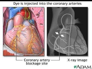 The document summarizes different cardiac procedures including percutaneous transluminal coronary angioplasty (PTCA), stenting, laser angioplasty, atherectomy, and coronary artery bypass grafting (CABG). PTCA involves inserting a balloon catheter into narrowed coronary arteries to widen them. Stents may be placed to keep arteries open. CABG is a surgical technique that uses leg veins or arteries to bypass blocked portions of coronary arteries. The document discusses indications, contraindications, pre-operative preparations, intraoperative and postoperative care for these procedures.