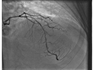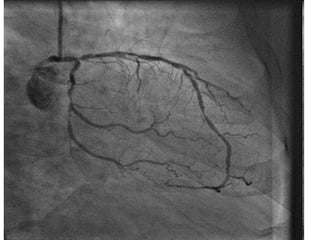 A 49-year-old male presented with syncope and was found to have cardiomyopathy with severely reduced ejection fraction less than 25% based on echocardiogram findings. Cardiac catheterization showed severe blockages of the left anterior descending and circumflex arteries. Despite a non-ischemic etiology, the patient was evaluated for an implantable cardioverter-defibrillator due to the reduced ejection fraction. A separate 33-year-old male presented with chest pain and was diagnosed with an anterior STEMI based on ECG findings.