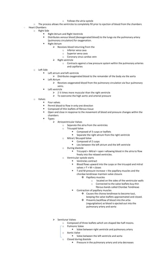 The heart is a cone-shaped muscle located in the mediastinum that pumps blood through the body. It has four chambers - two atria that receive blood and two ventricles that pump blood out. The heart contracts rhythmically through the cardiac cycle of diastole and systole. Blood flows through valves between the chambers and arteries during each phase. The heart is supplied with oxygenated blood from the coronary arteries to fuel its continuous pumping action.